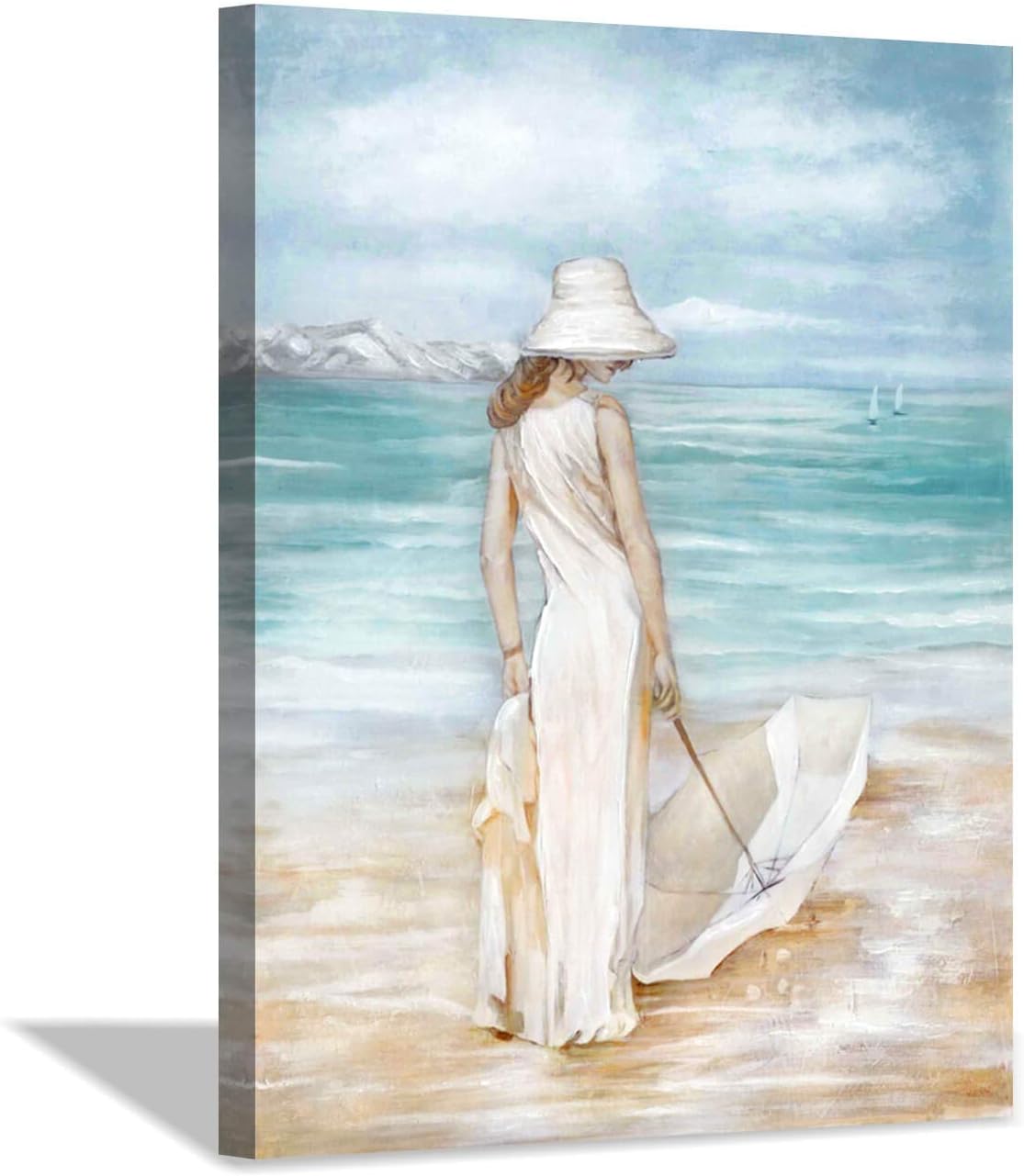 Beach Lady Painting Canvas Wall Art: Pieces included artwork & hanging kit. A set includes 1 panel beach picture wall art ( 18×24 inches ). Copyright licensed image with high resolution definition