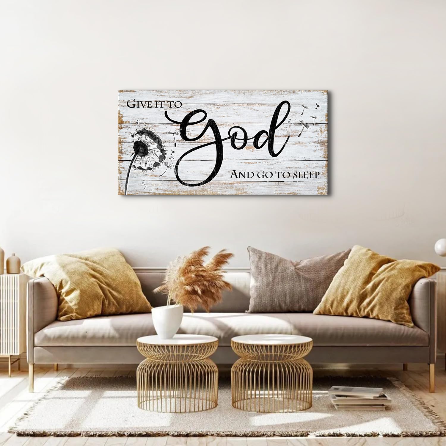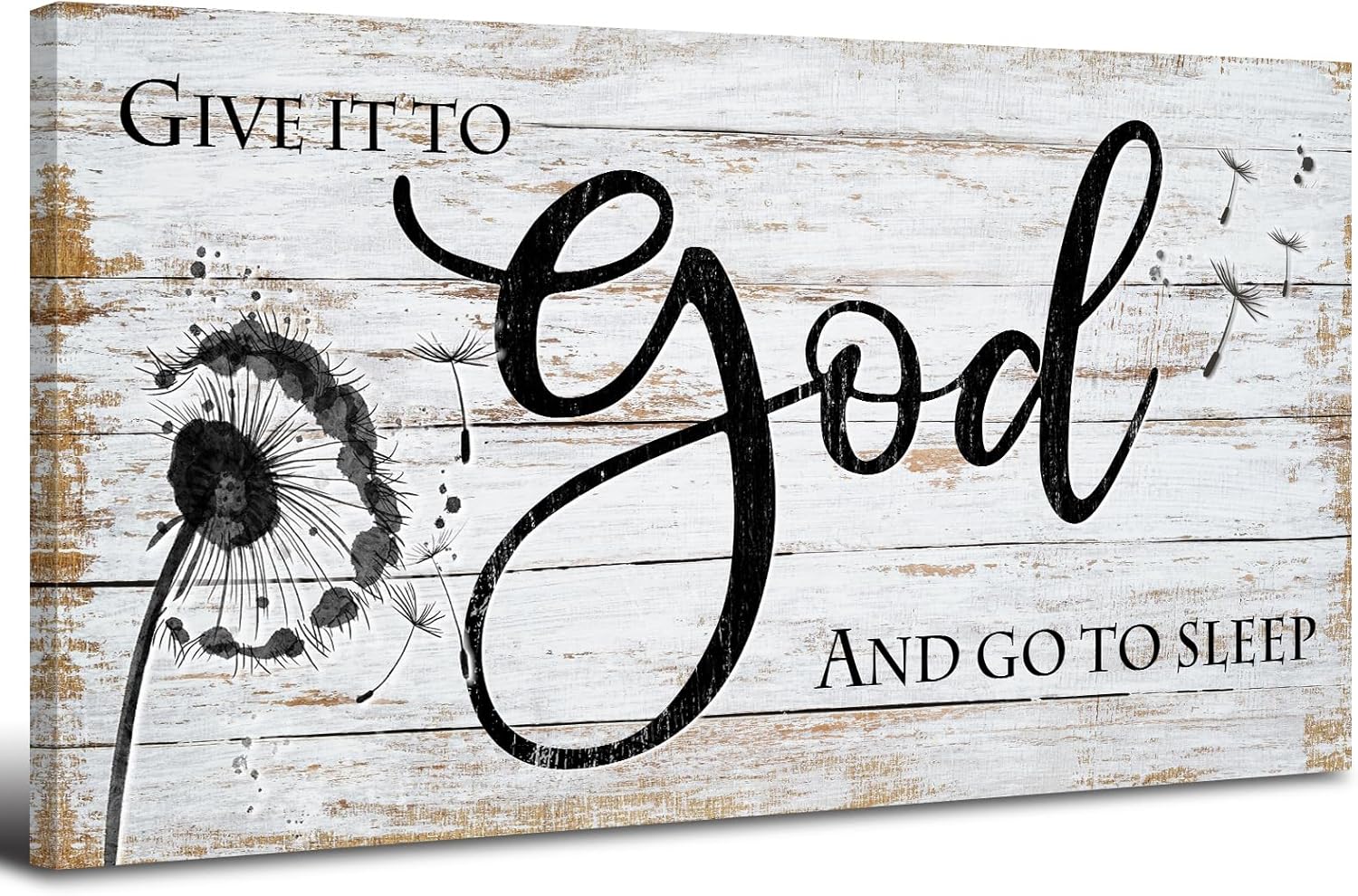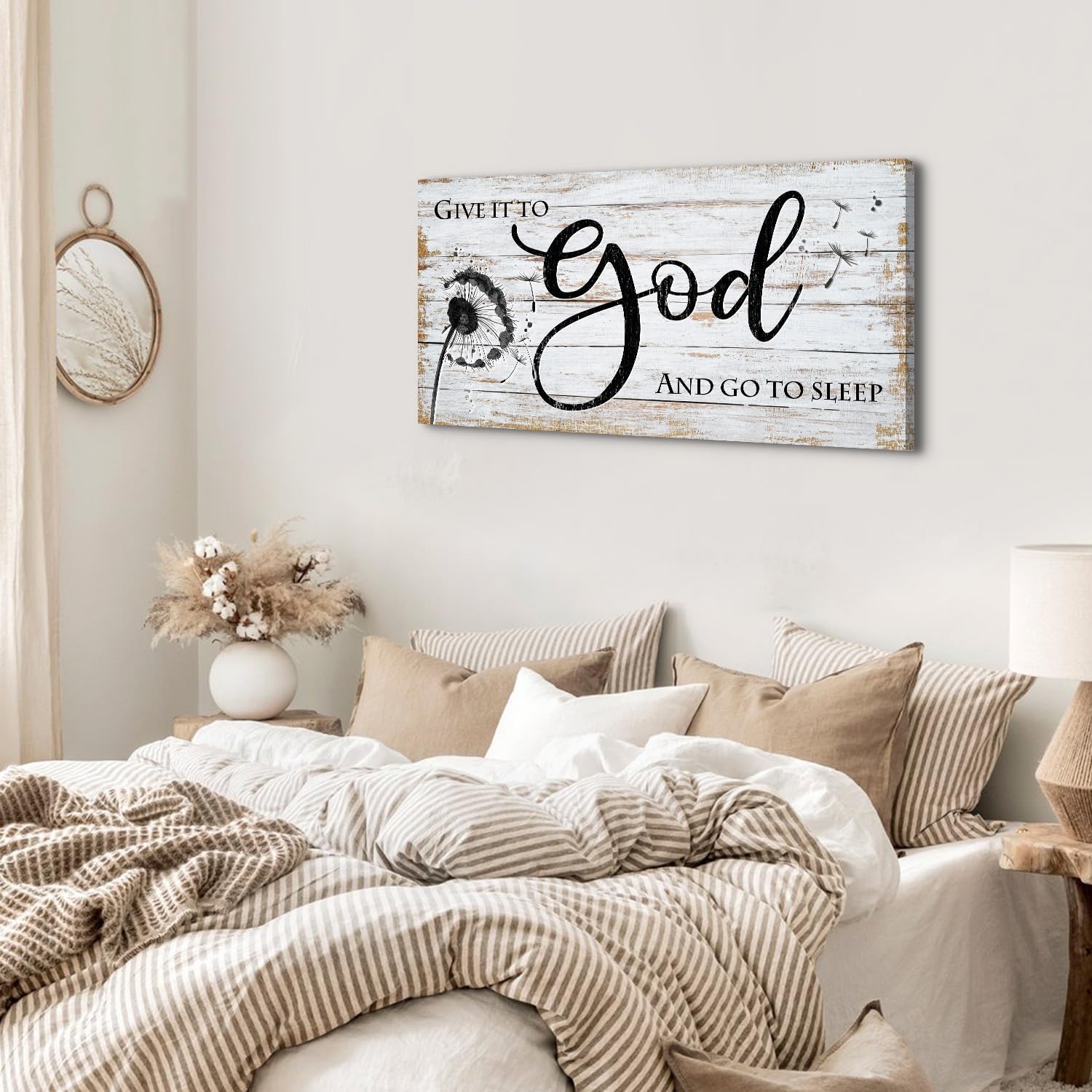 AIYISU Christian Bible Verses Wall Art Rustic Wall Decor for Bedroom Living Room Dandelion Pictures Give It To God and Go To Sleep Sign Canvas Painting Religious Poster Artwork Home Decorations 20×40