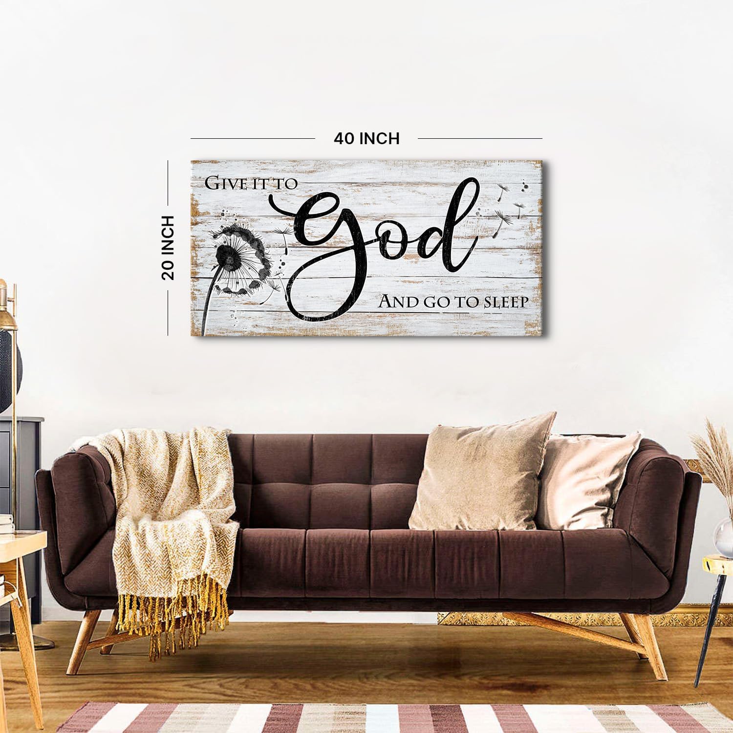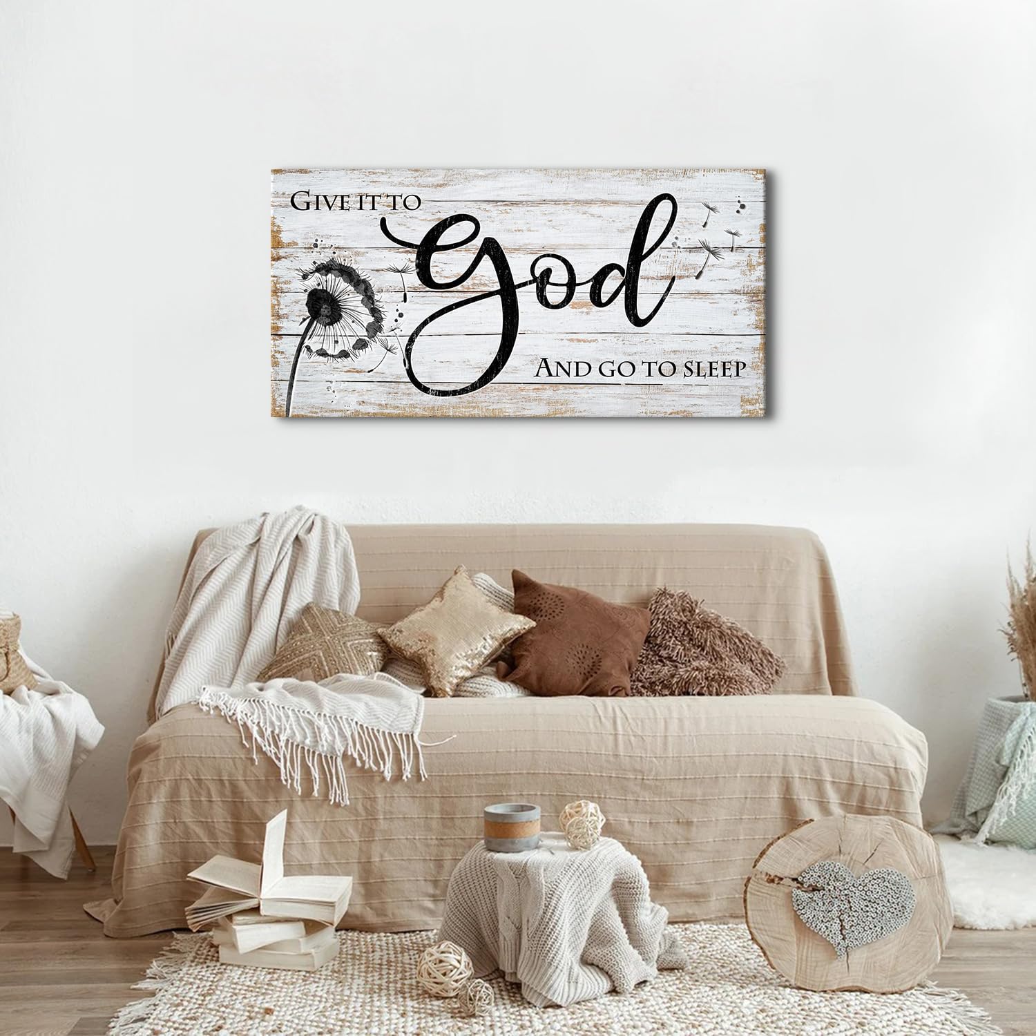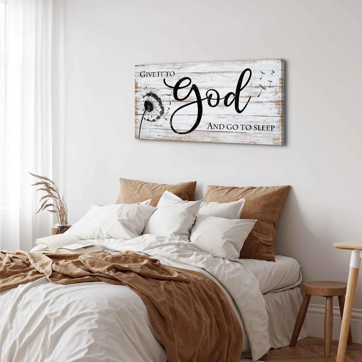 AIYISU Christian Bible Verses Wall Art Rustic Wall Decor for Bedroom Living Room Dandelion Pictures Give It To God and Go To Sleep Sign Canvas Painting Religious Poster Artwork Home Decorations 20×40