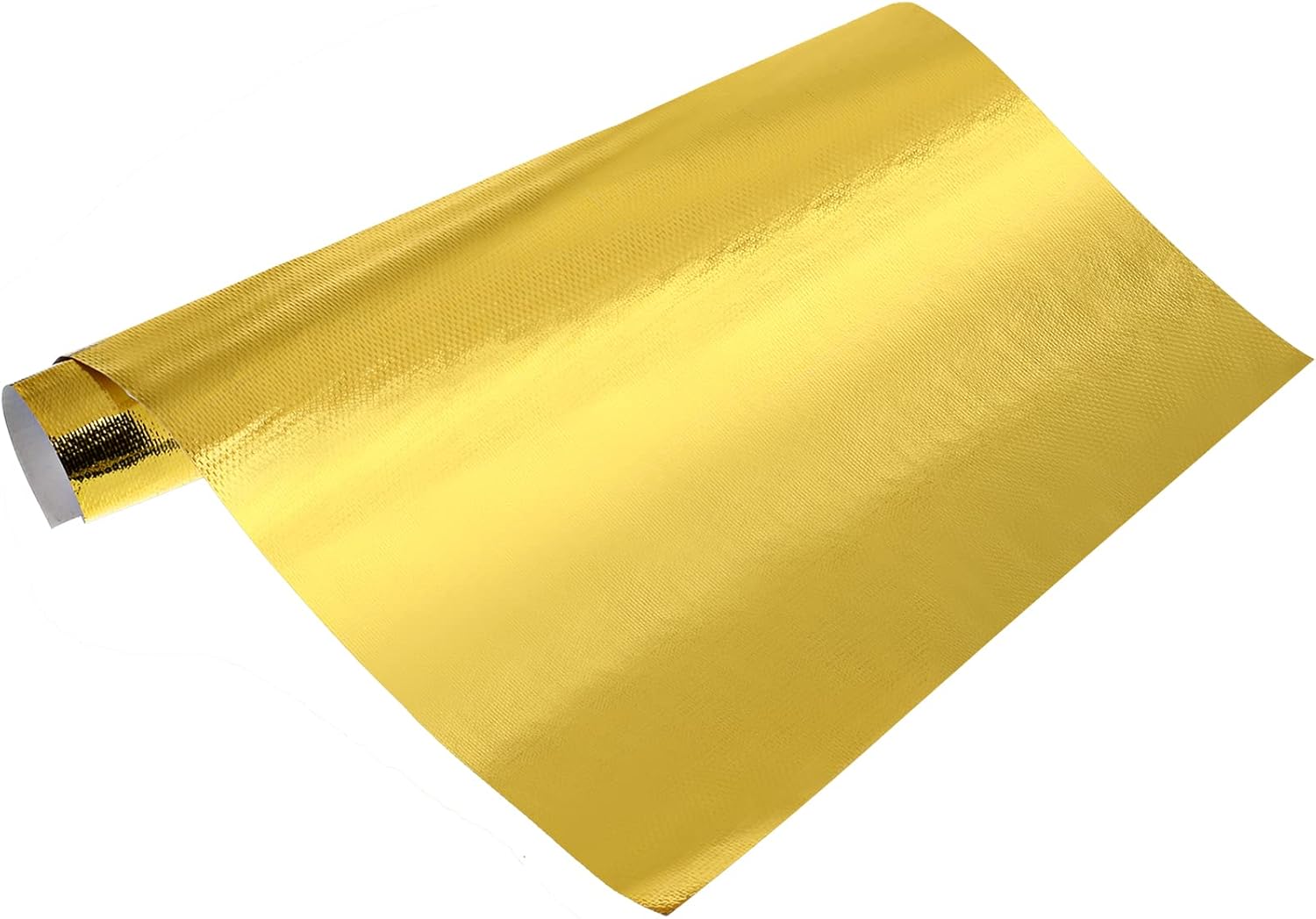 BBTO Heat Reflective Sheet Adhesive Backed Aluminized Fiberglass Heat Shield Tape Protection Barrier Heat Shield Resistant Material for Hose and Auto Use Heat Insulation Sheet(Gold, 36 x 48 Inch)