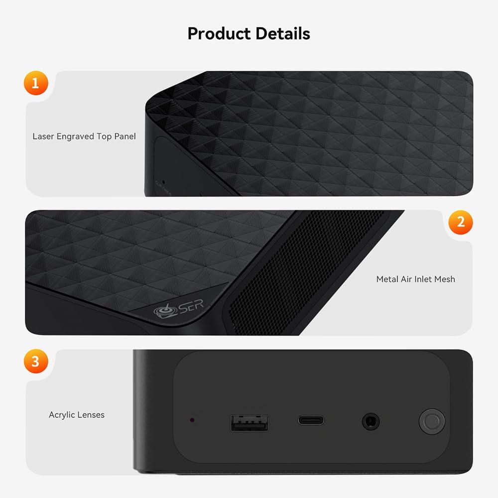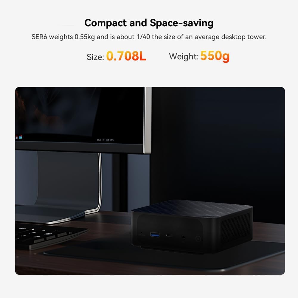 👍【2.5Gbps Lan, wifi6 BT5.2】SER6 mini computer adopts 2.5Gbps Ethernet LAN port which provides high speed and reliable data transfer, USB 3.2(10Gbps) and USB-C4.0 ports. SER 6900HX mini computers equipped with WiFi 6 speed up to 2.4G bps( 802.11ax) and Bluetooth 5.2 is faster and more stable data transmission, which will improve your work effeciency.