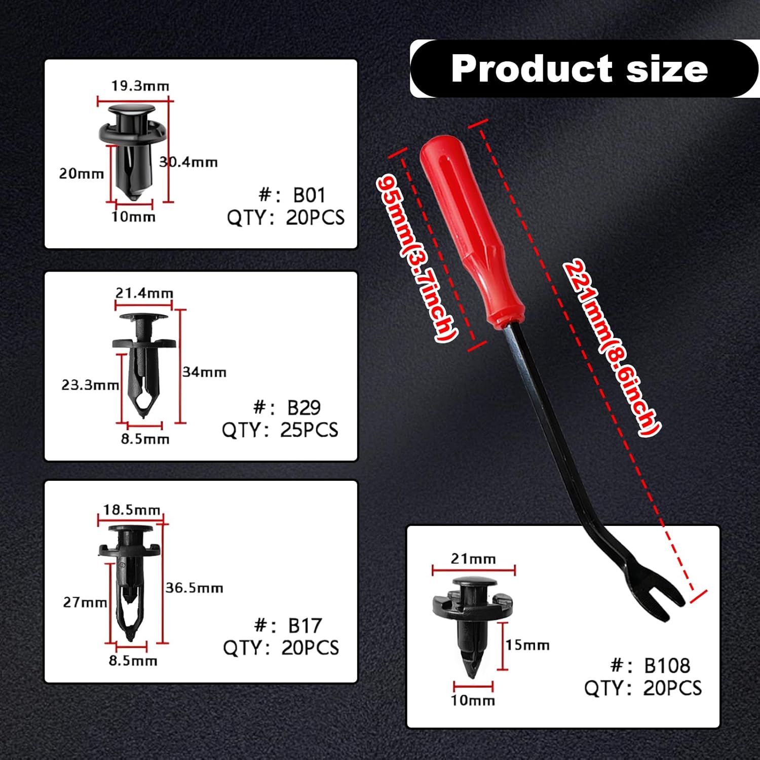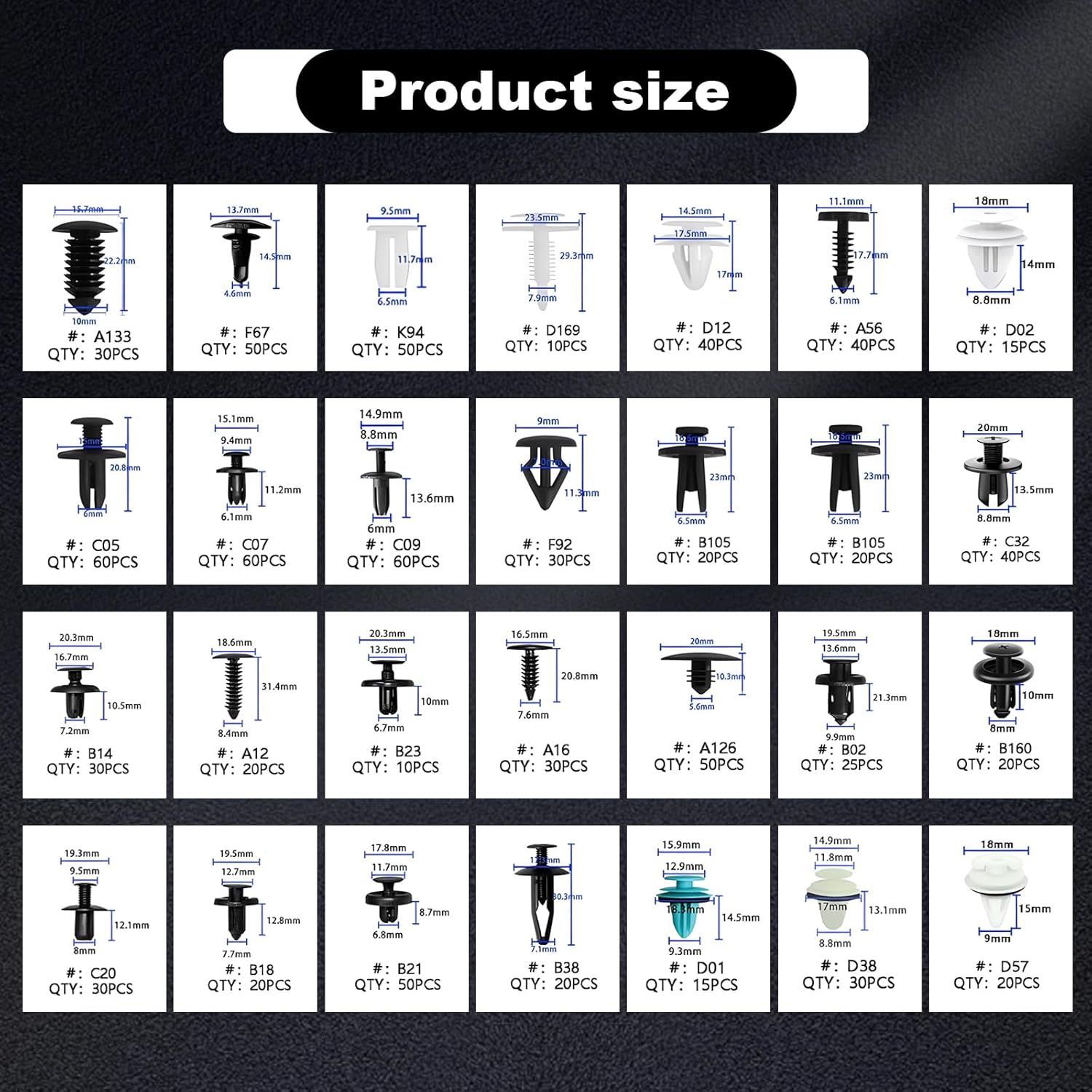 【HIGH QUALITY】Most of our car retainer push clips kit are made of high quality nylon. Rugged, it is can use for a long time.Duty construction for durability would not break or crack easily during use.