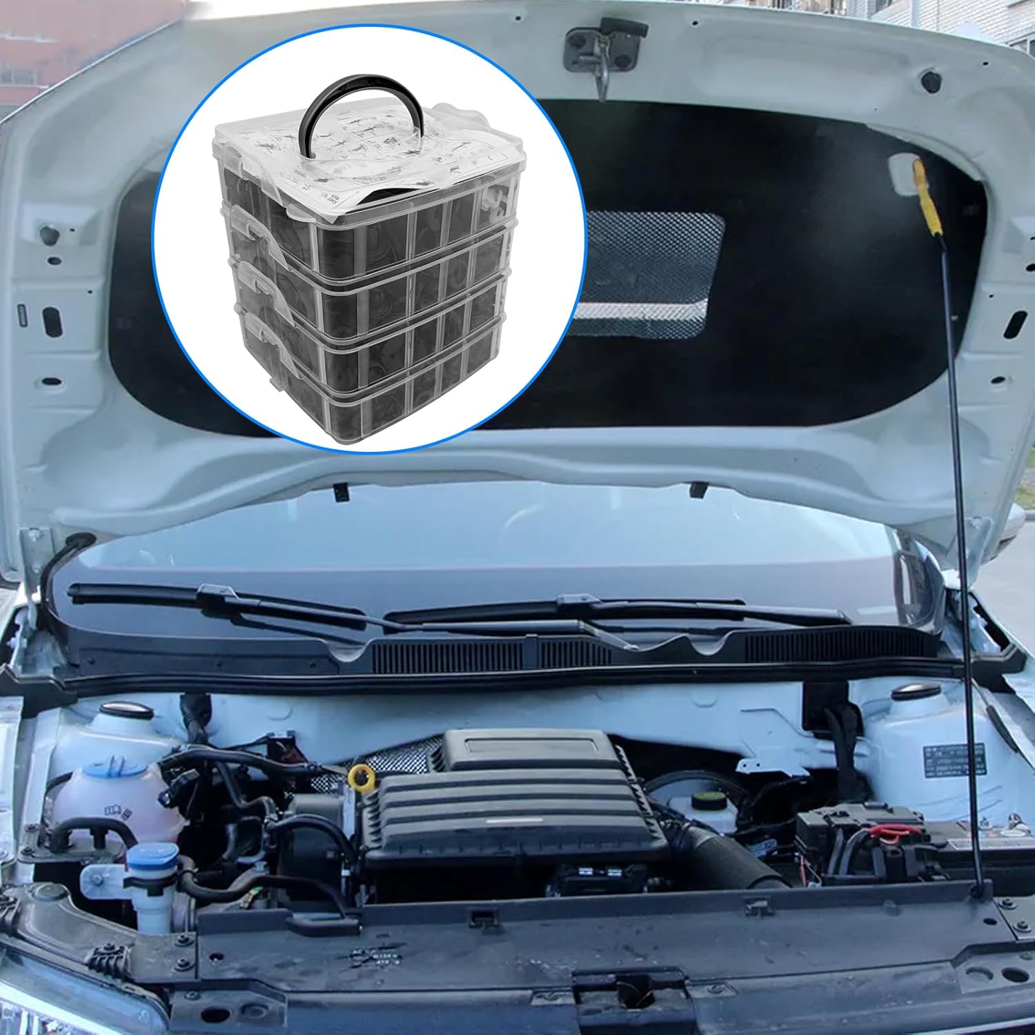 Supplied in a plastic box with separately compartments for organized storage which makes it easy to carry.