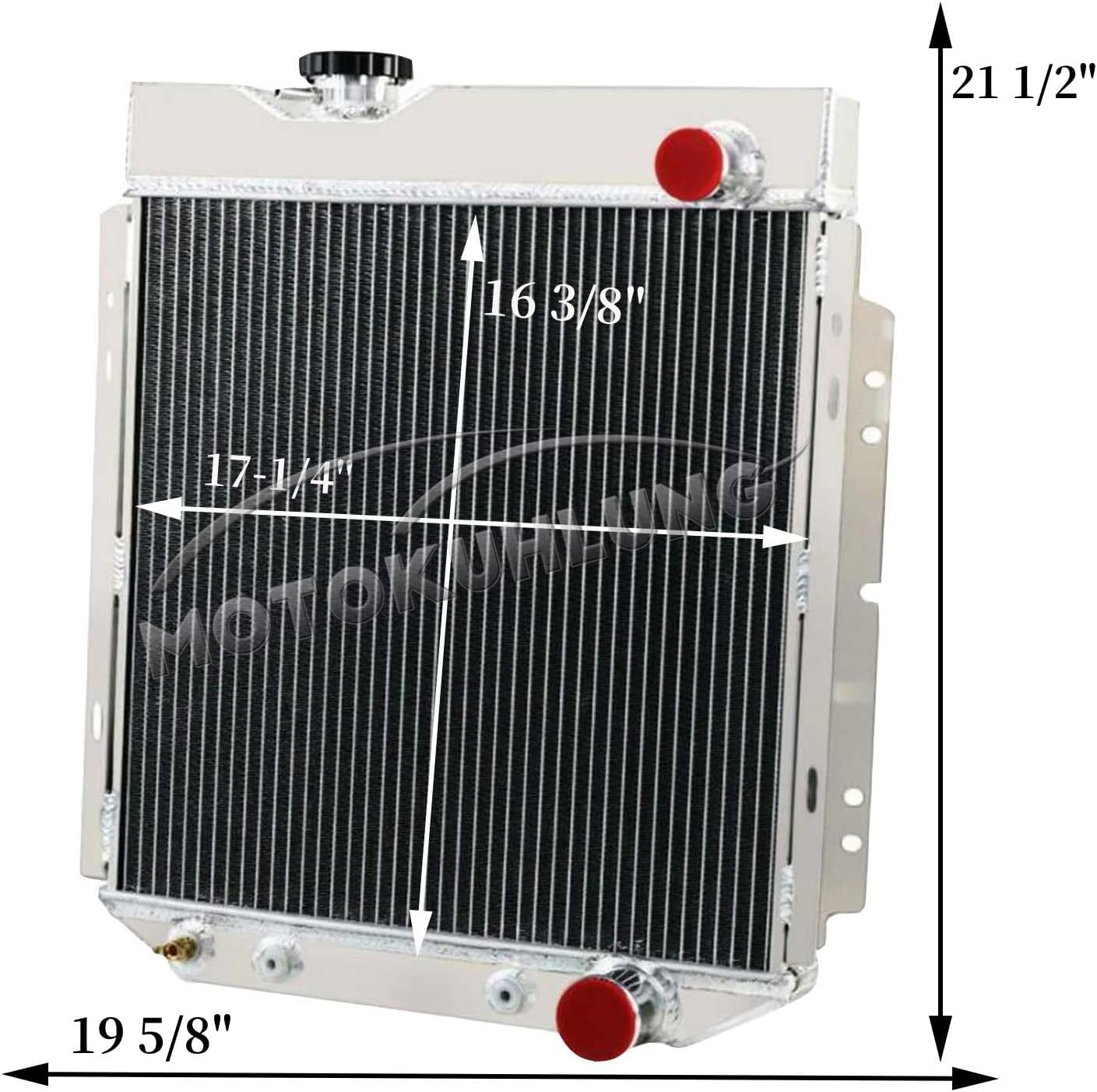 ☆PRODUCT DETAILS! – Core Size: 16-3/8″H × 17-1/4″W ; Overall Size: 21-1/2″H × 19-5/8″W ; Upper Inlet: 1-1/2″ ; Lower Outlet: 1-3/4″ ; Trans Cooler Details are: 1/8-27 NPT; Maximum Fan CFM: 1730 cfm ; Maximum Fan RPM: 2,250 rpm ; Fan Amp Draw: 12.70 amps.