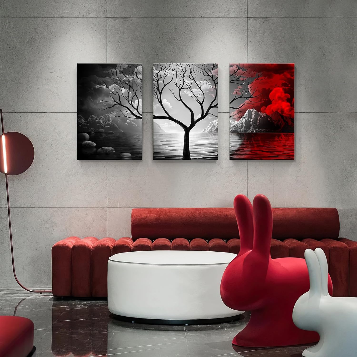 Versatile Wall Art: Our black and white cloud tree painting exudes a timeless aesthetic that seamlessly blends into a variety of decor styles. The use of classic colors alongside natural elements like trees, mountains, and seascapes ensures it complements both modern and traditional interiors flawlessly.