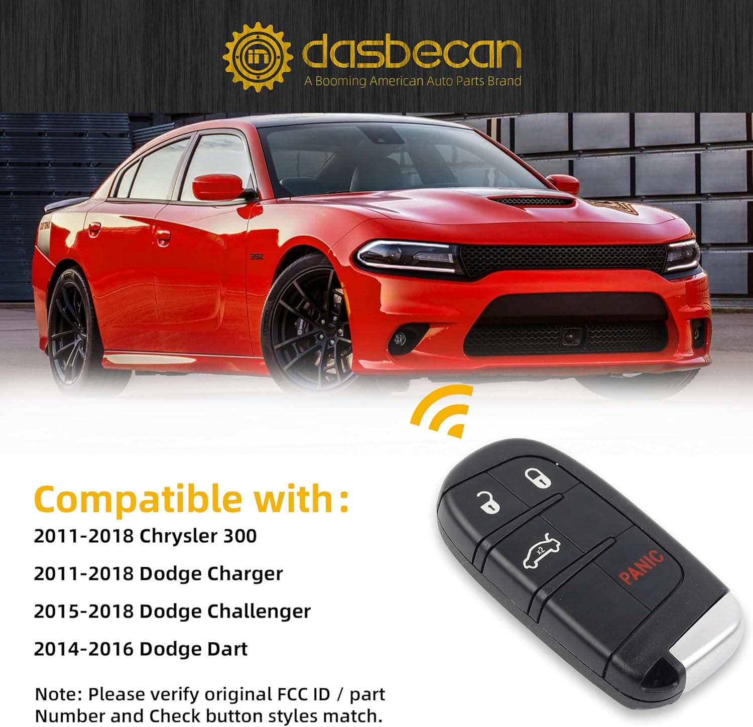 Fitment: This key fob replacement fits for Chrysler 300 2011-2018, Dodge Charger 2011-2018, Dodge Challenger 2015-2018, Dodge Dart 2014-2016.