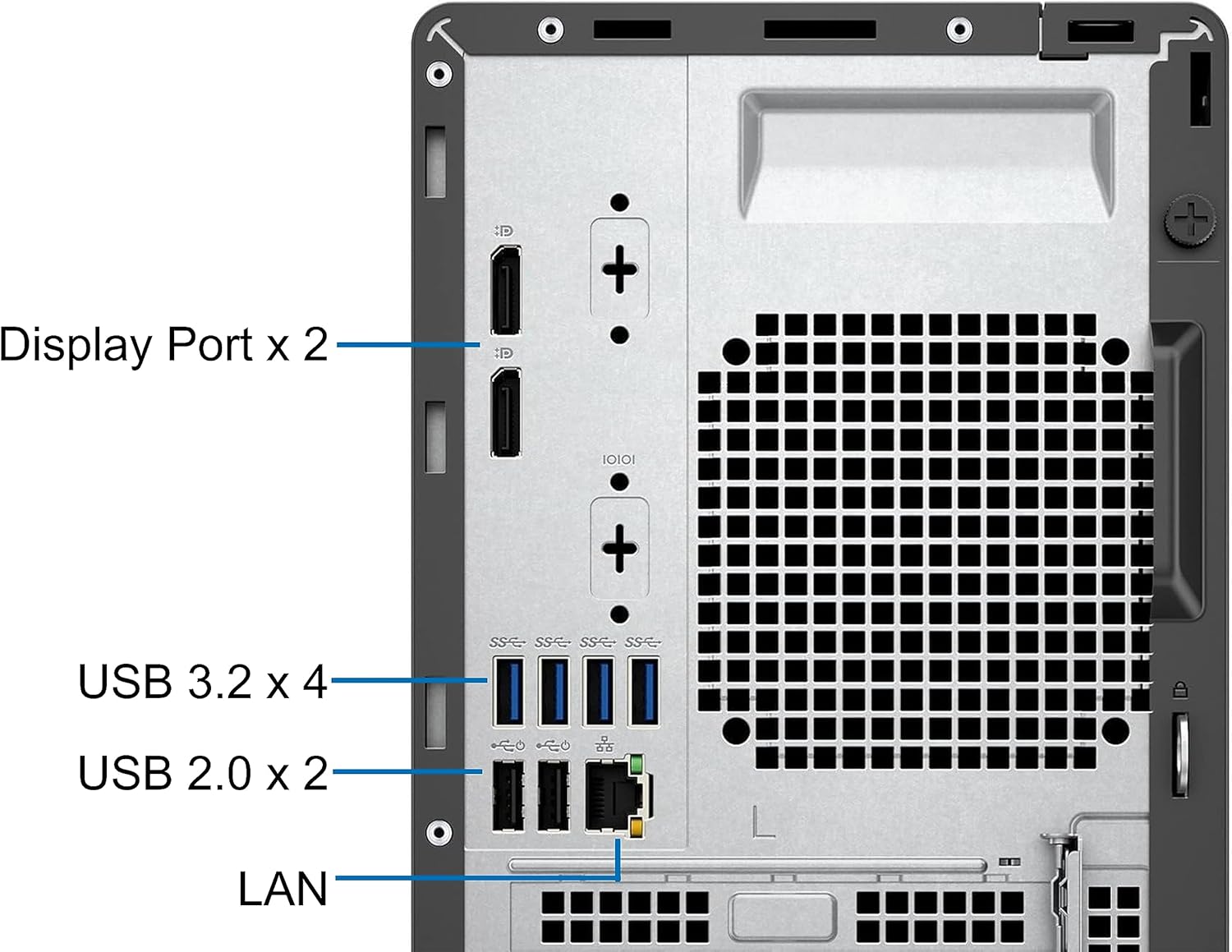 Rear Ports: (4) USB 3.2 Gen 1 Type-A ports, (2) USB 2.0 Type-A ports with Smart Power On, (2) DisplayPort 1.4a ports