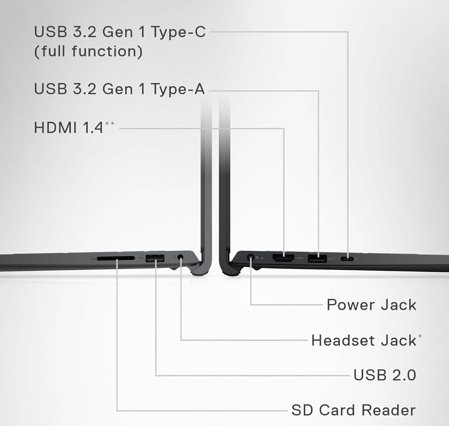 1 x USB-A 3.2, 1 x USB-C 3.2, 1 x USB 2.0, 1 x HDMI 1.4, 1 x SD Card Slot