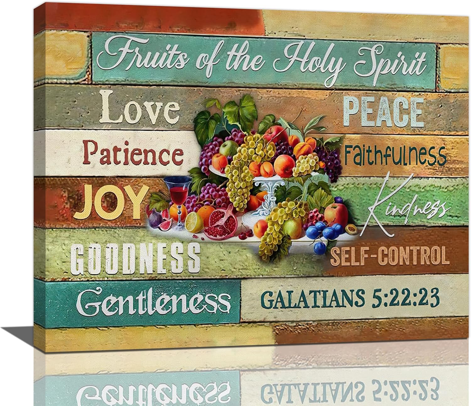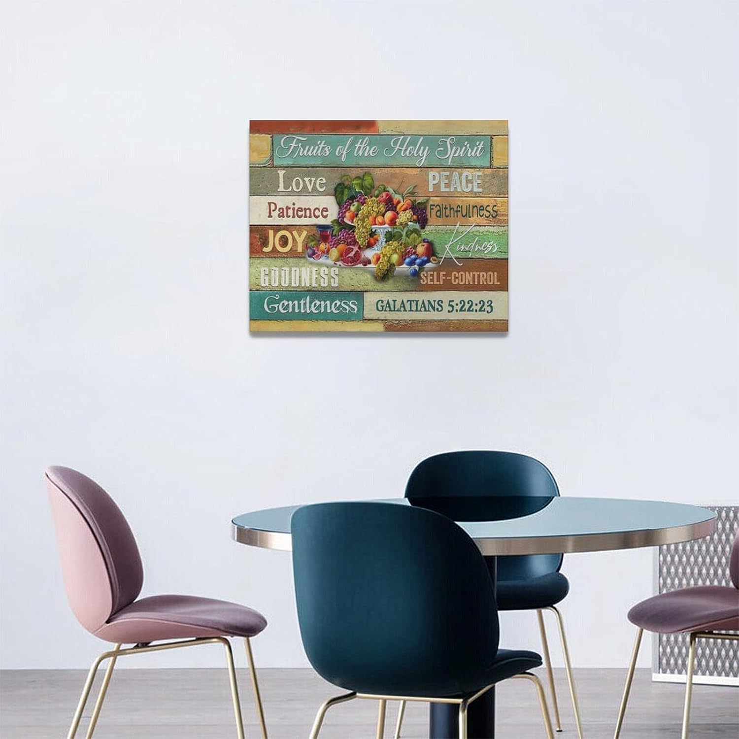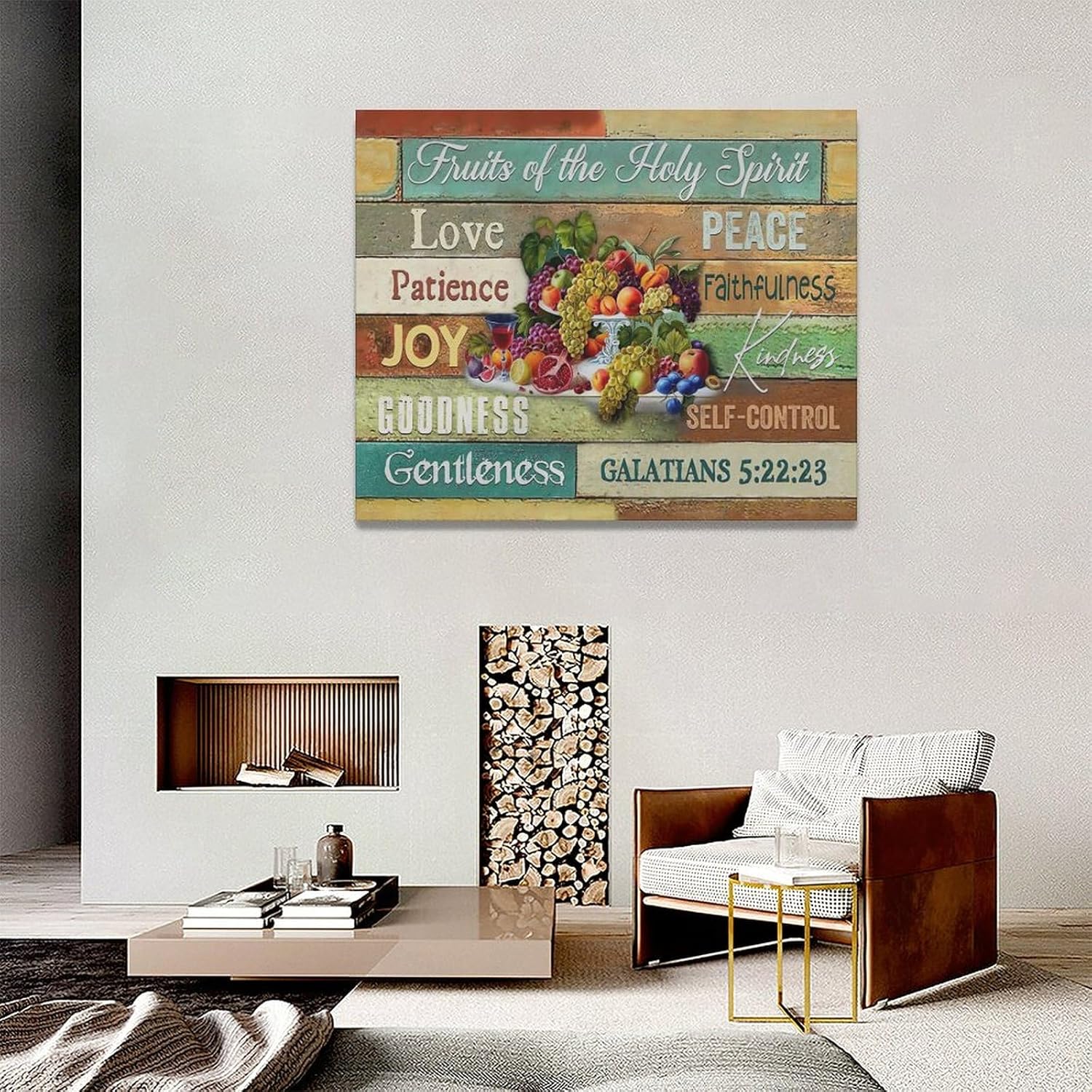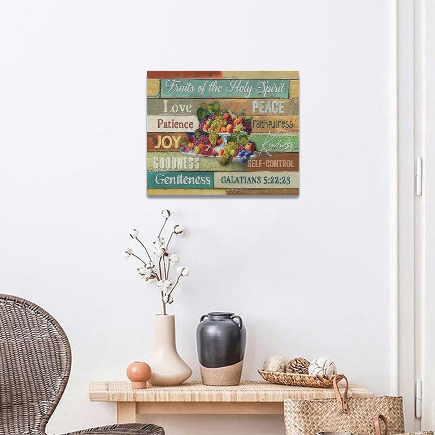 Fruit Of The Spirit Wall Art Christian Pictures Wall Decor Bible Verse Canvas Prints Poster Framed Artwork Paintings Home Decorations for Kitchen Living Room Bedroom Dining Room 20″x16″