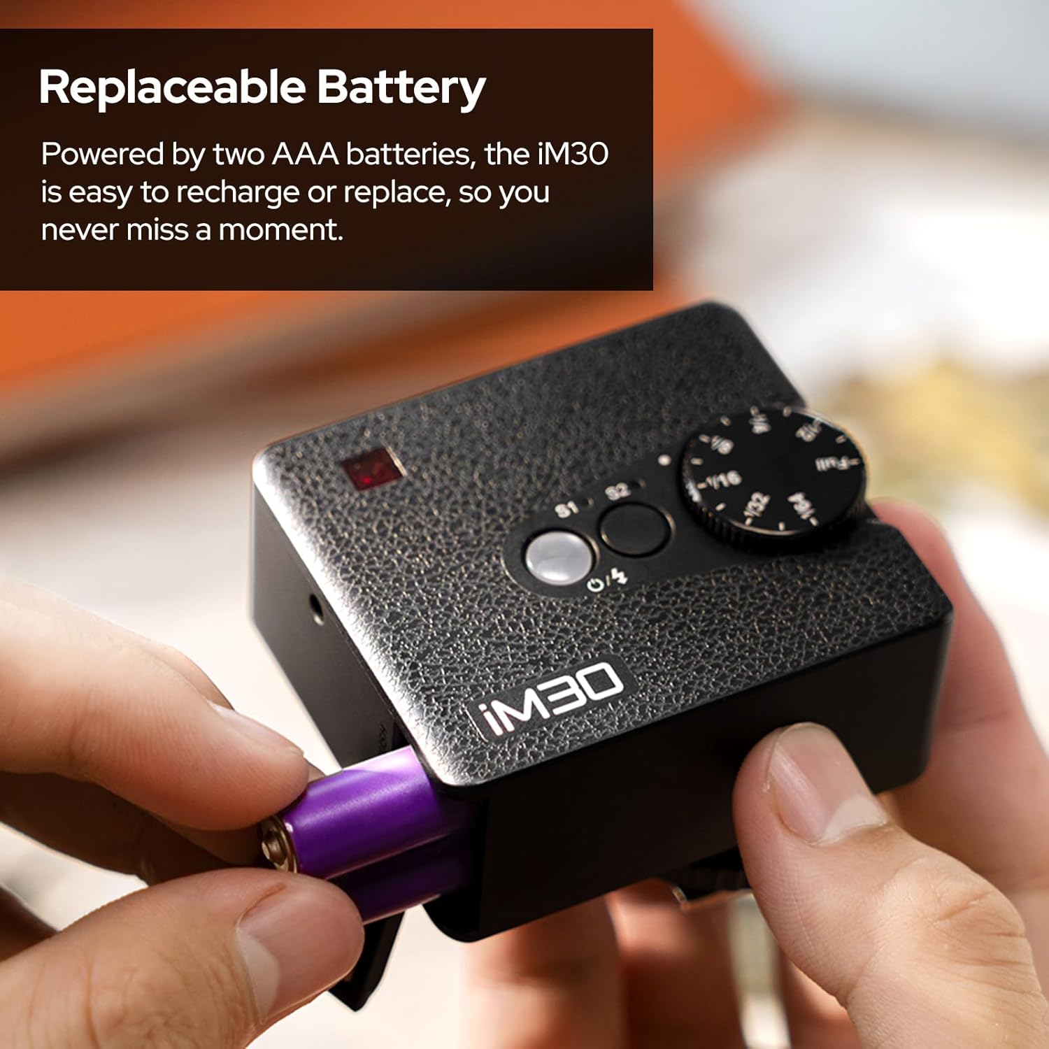Lightweight Build, Pocket-Friendly: At only 78g (without battery) and measuring 2.4” x 2.05” x 1.77”, the iM30 slips easily into your pocket or camera pouch.