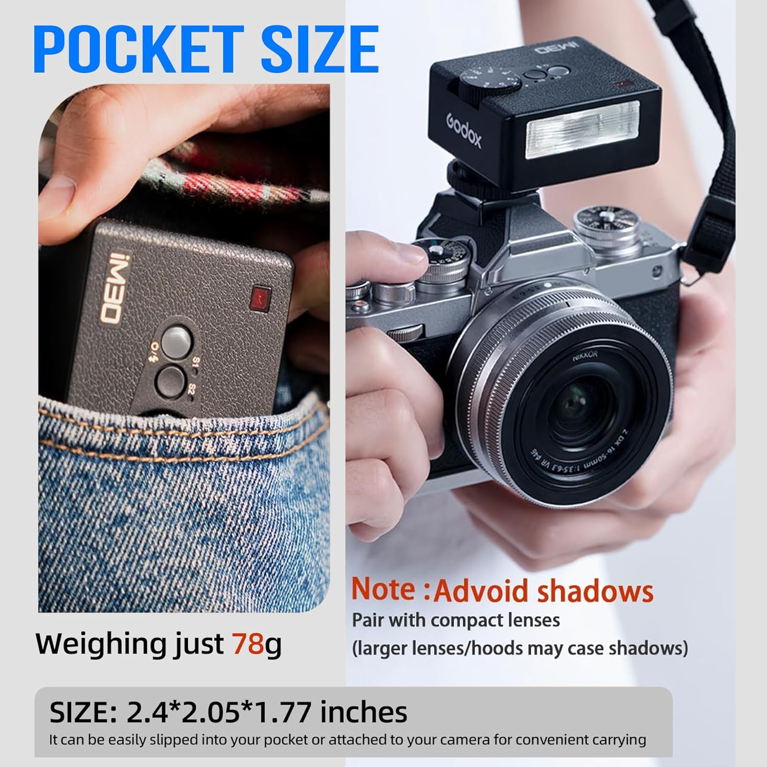 📸️【Wide Compatibility】Compatible with Fuji f1/Canon/Nikon, with Sony zv1 with Sony zve10/Olympus with Ricoh gr3 cameras, the GODOX iM30 Flash offers a simple, plug-and-play setup with its single-contact hot shoe, getting you ready to shoot in seconds. godox im30 mini flash ALWAYS WORKS