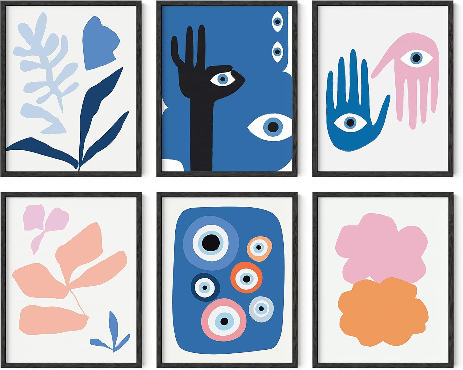 FRAMED MODERN WALL DECOR: Introducing our set of 6 abstract wall decor featuring the ancient protective symbol of the evil eye paired with beautiful flowers in bright colors! Each evil eye poster is carefully crafted to bring a touch of bohemian chic to your bedroom wall art while also serving as a talisman of protection against negative energy