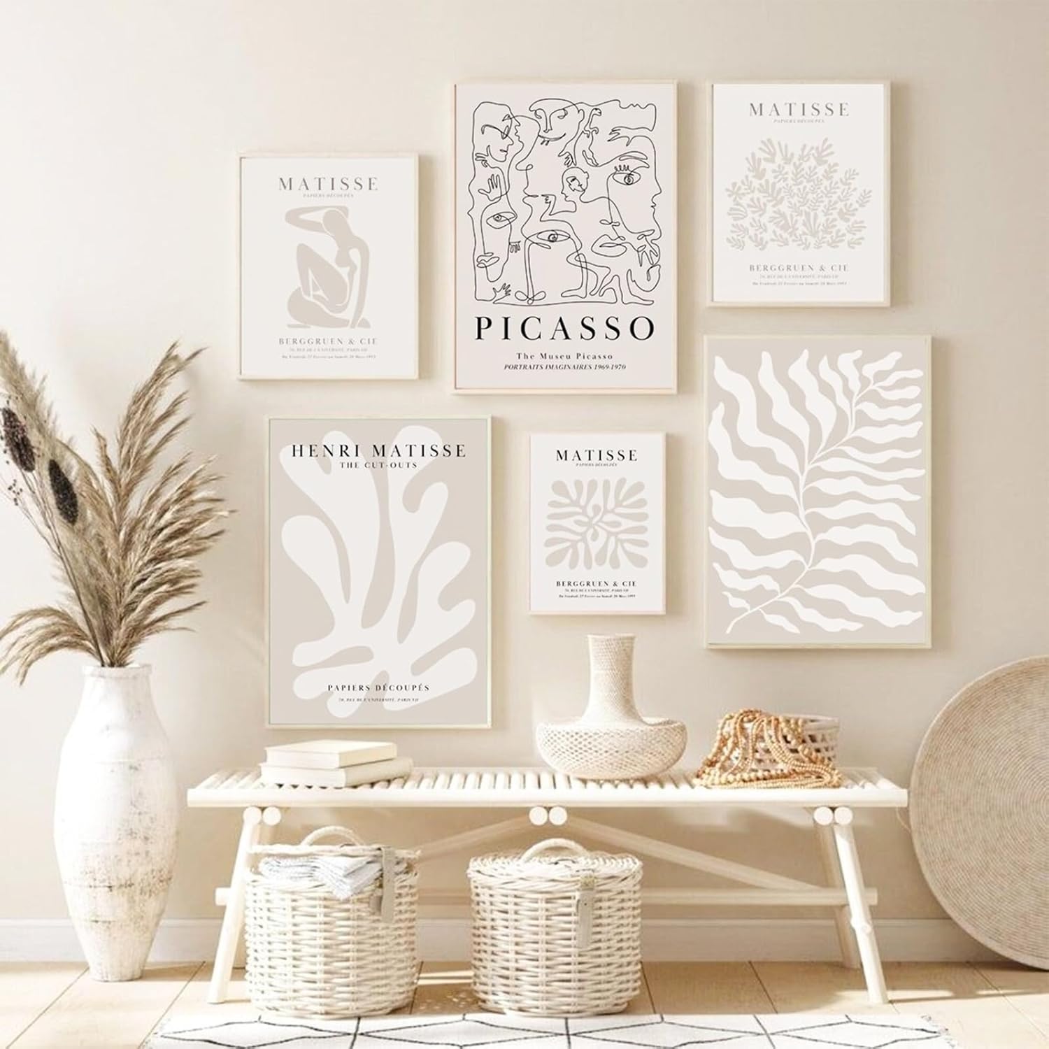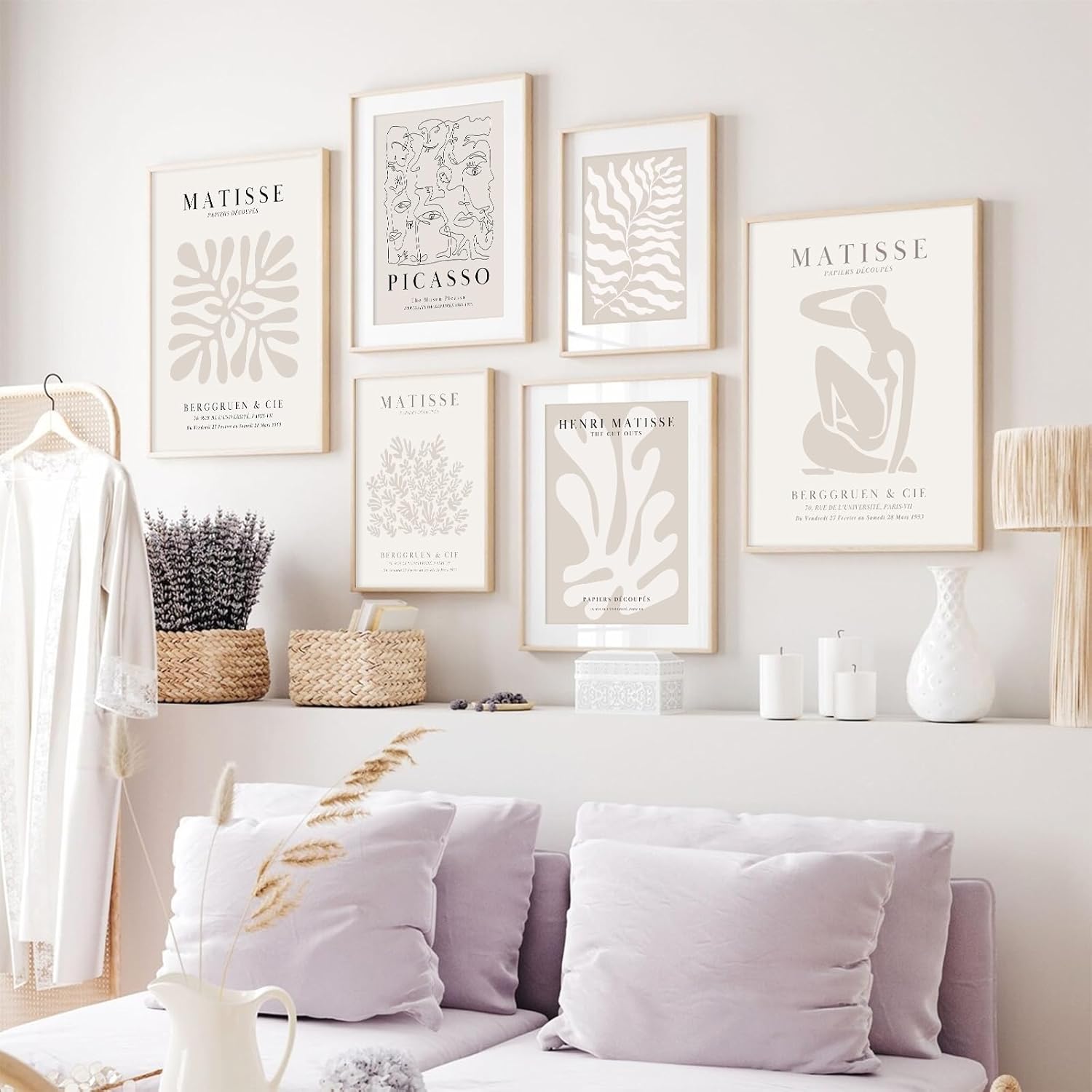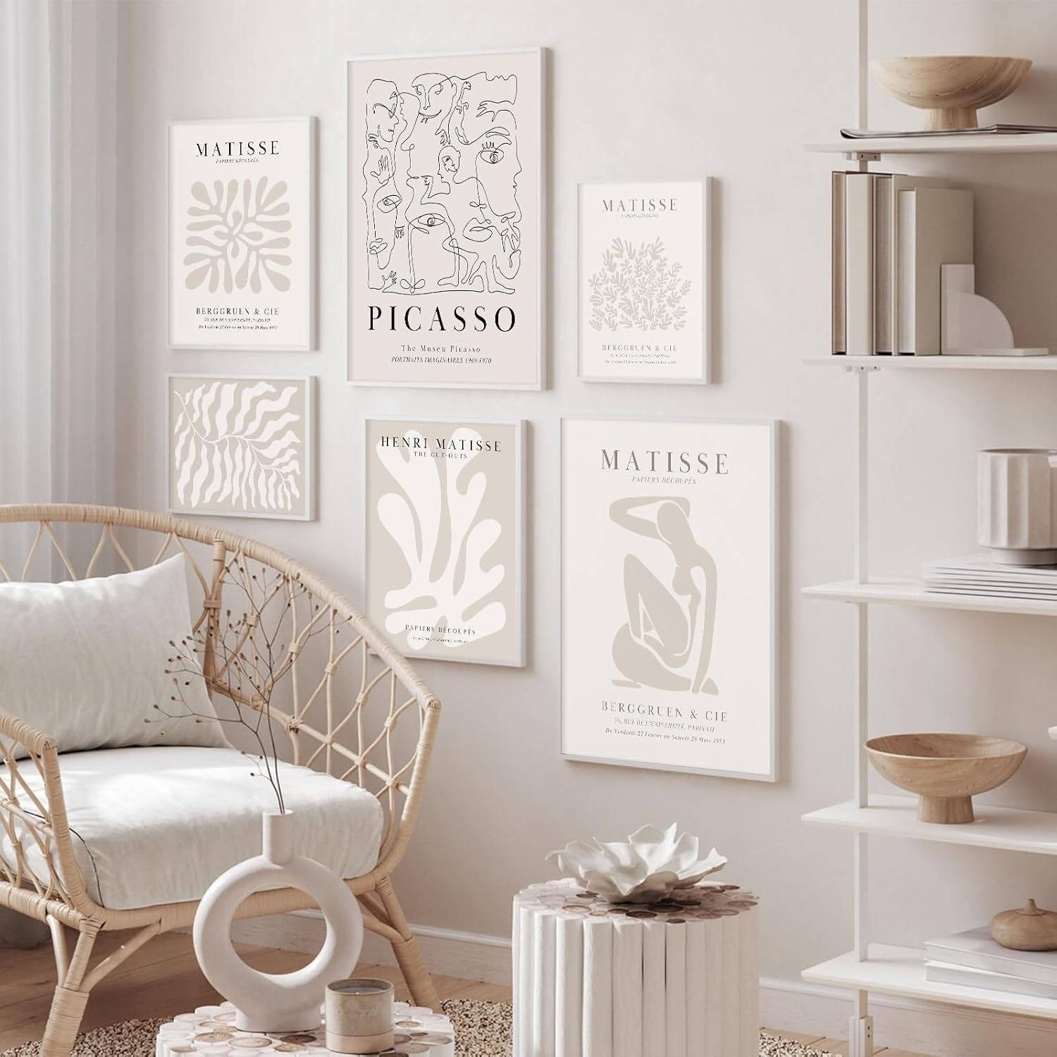 Henri Matisse Wall Art Prints Flower Abstract Canvas Pictures Aesthetic Beige Wall Art Decor Matisse Picasso Poster Gallery Vintage Painting Matisse Artwork for Bedroom 12×16 Inch Unframed Set of 6