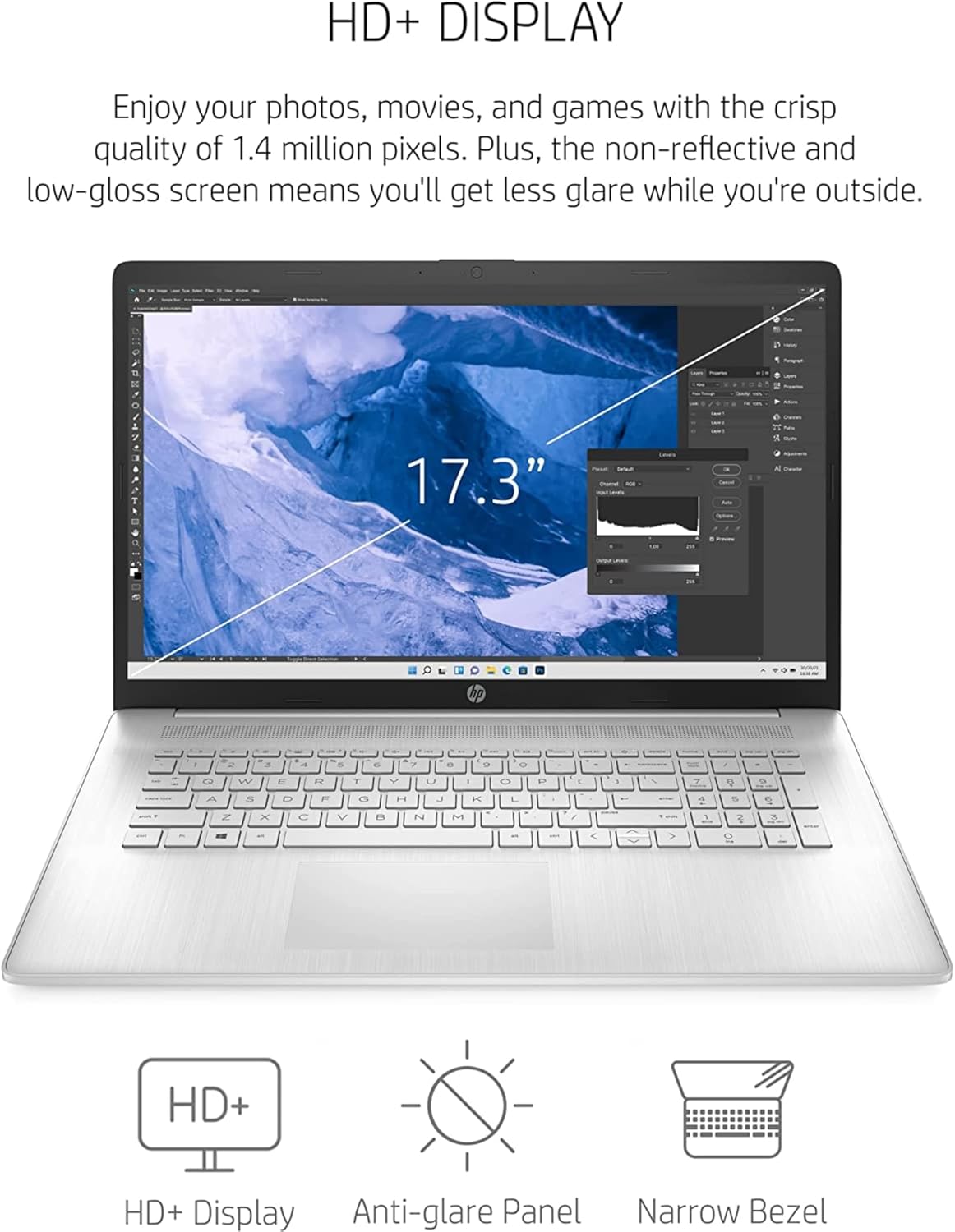 Display: 17.3″ diagonal, HD+ (1600 x 900), anti-glare, 250 nits, 60% NTSC