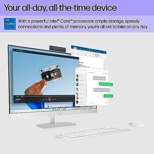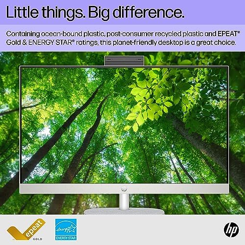 The HP 27″” All-in-One Desktop takes caring for the planet to the next level. This contemporary, ultra-slim desktop was designed with the planet in mind, while turning your to-do lists into to-done lists with the reliable processing power of the 13th Generation Intel Core i7-1355U, upgraded memory, and enhanced multitasking features for heightened performance. Plus, this HP desktop is EPEAT Gold registered and ENERGY STAR certified. HP is here to help. This HP computer comes with 1-year limited hardware warranty and 1-year limited technical support for software and initial setup with 24-hour, 7 days a week web support when shipped from and sold by Amazon.com. ENERGY STAR and the ENERGY STAR mark are registered trademarks owned by the U.S. Environmental Protection Agency. Based on U.S. EPEAT® registration according to IEEE 1680.1-2018 EPEAT®. EPEAT® status varies by country. Visit www.epeat.net for more information.