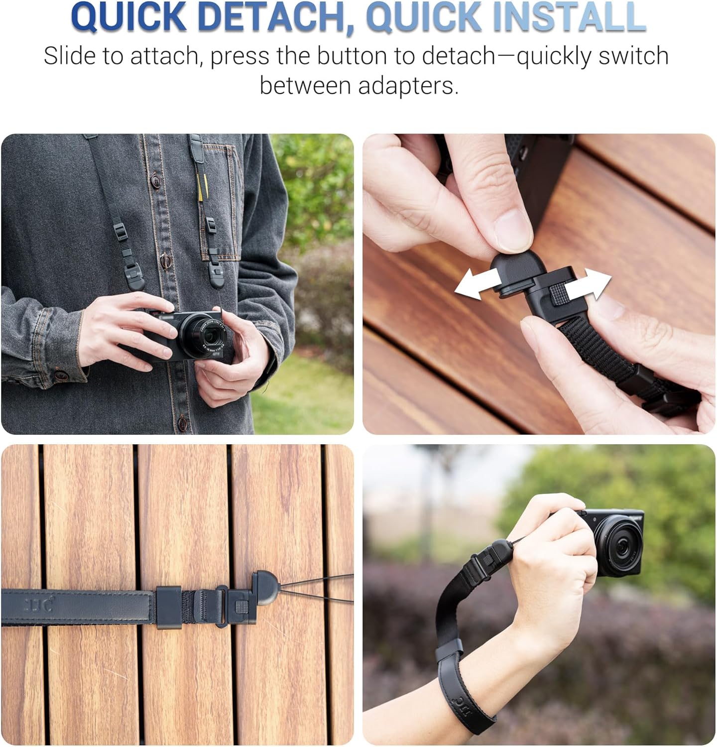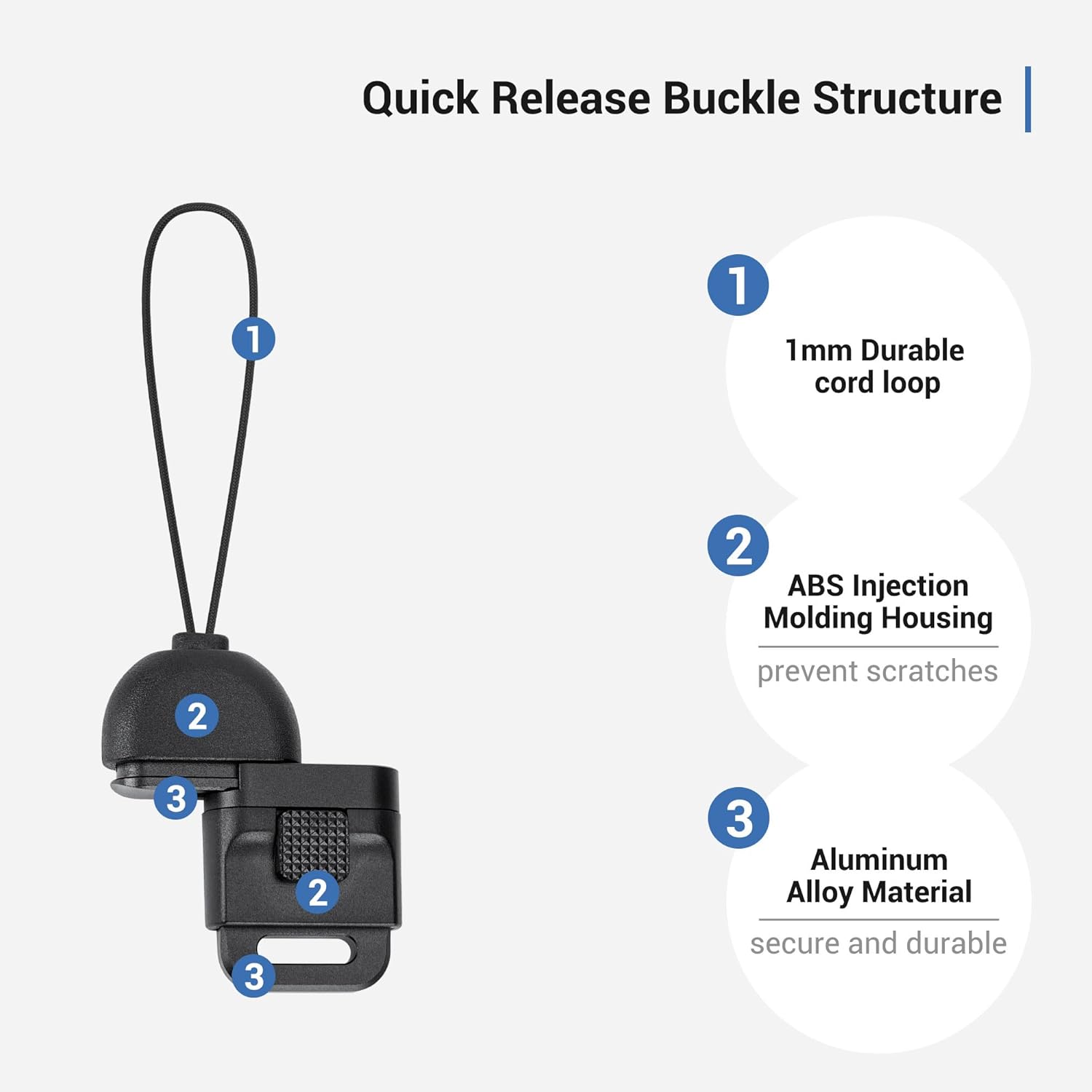 Durable and Scratch Proof: The quick-release buckle’s connecting structure is crafted from durable aluminum while the main body is made of ABS to prevent any scratches on the camera, ensuring safety and reliability