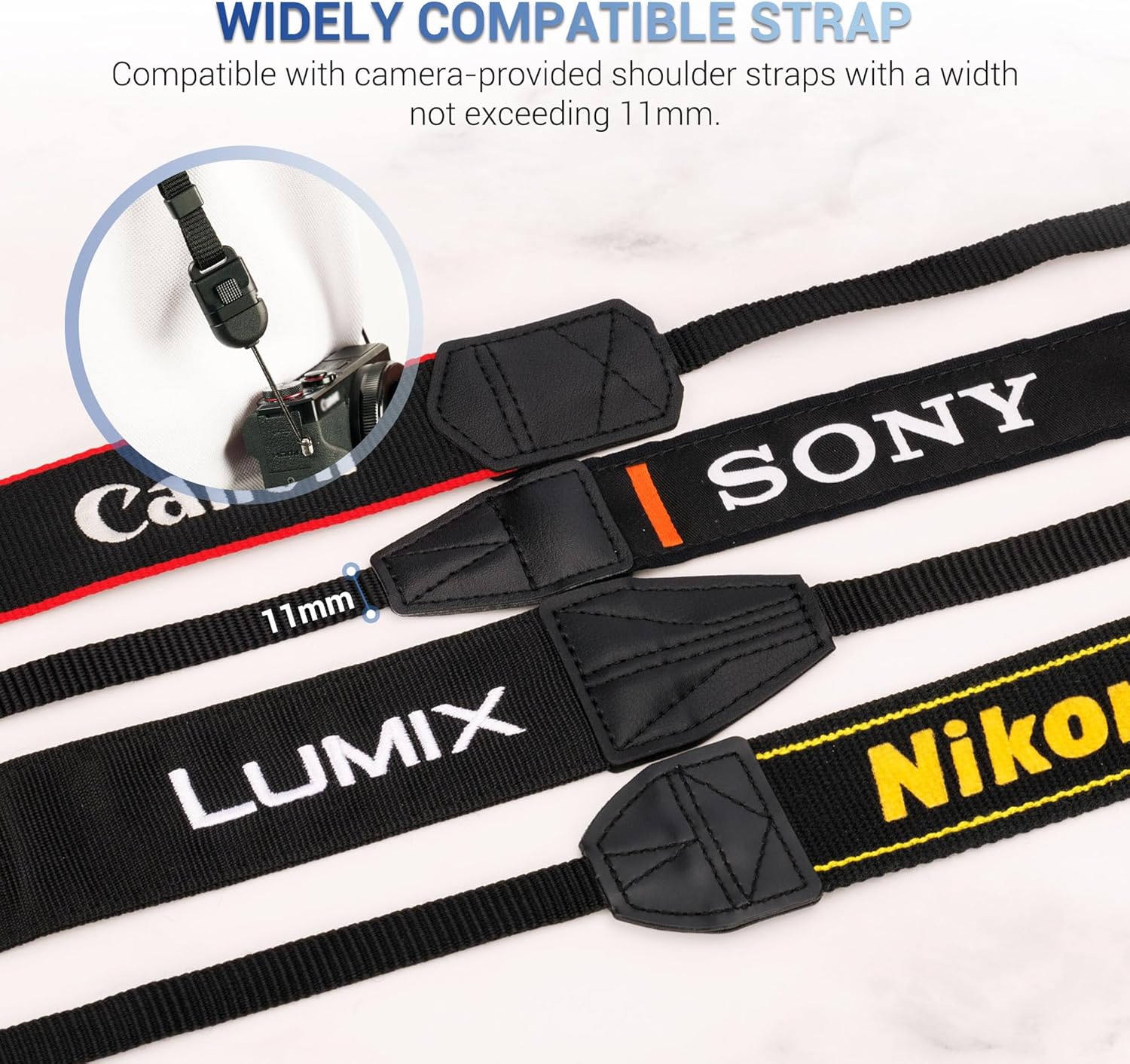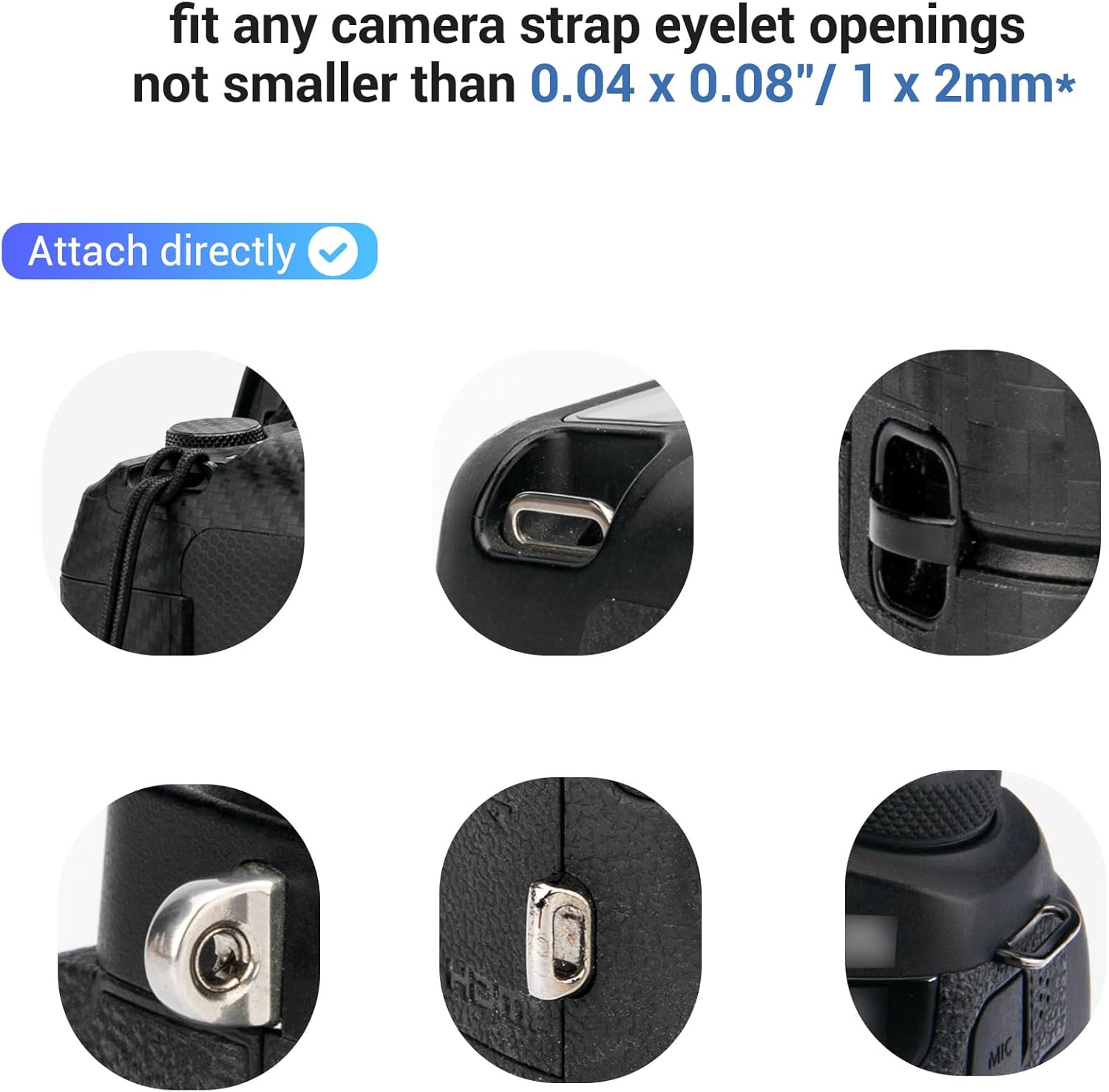 Wide Compatibility: This connectors support most third-party camera strap or wrist strap with the width less than 0.43”/11mm, it provides a more convenient way for attaching and detaching your strap