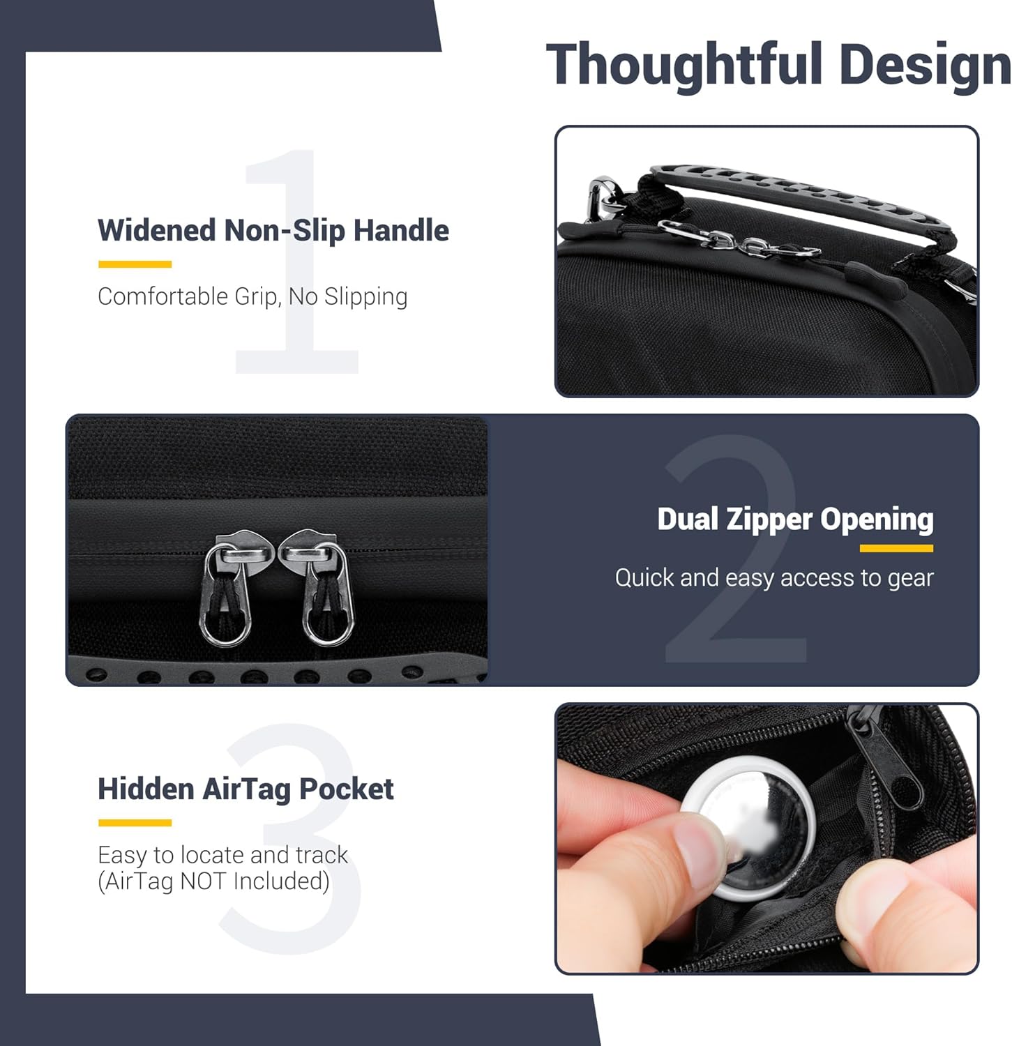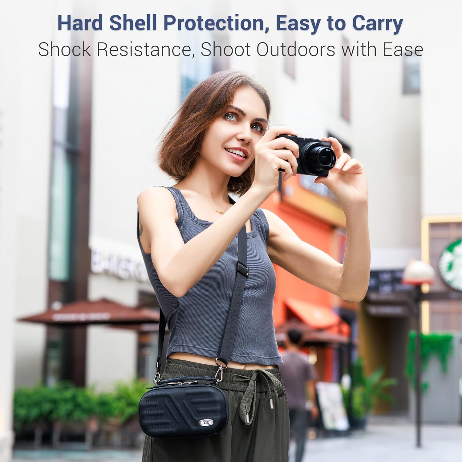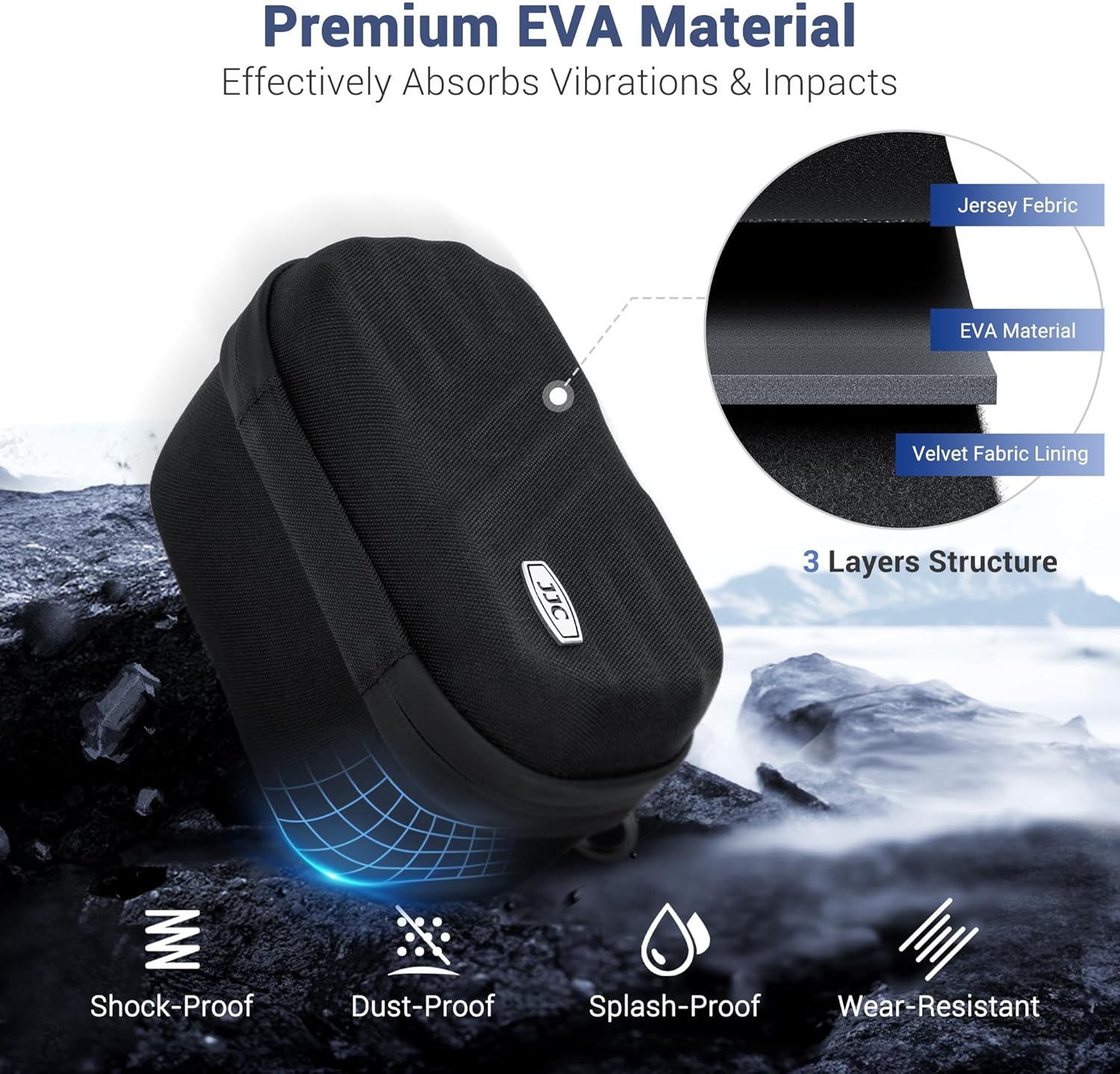 This camera case made of premium EVA material, sturdy and durable, protects camera away from dust, moisture and water splash, helps absorb shocks and minimize impact damage