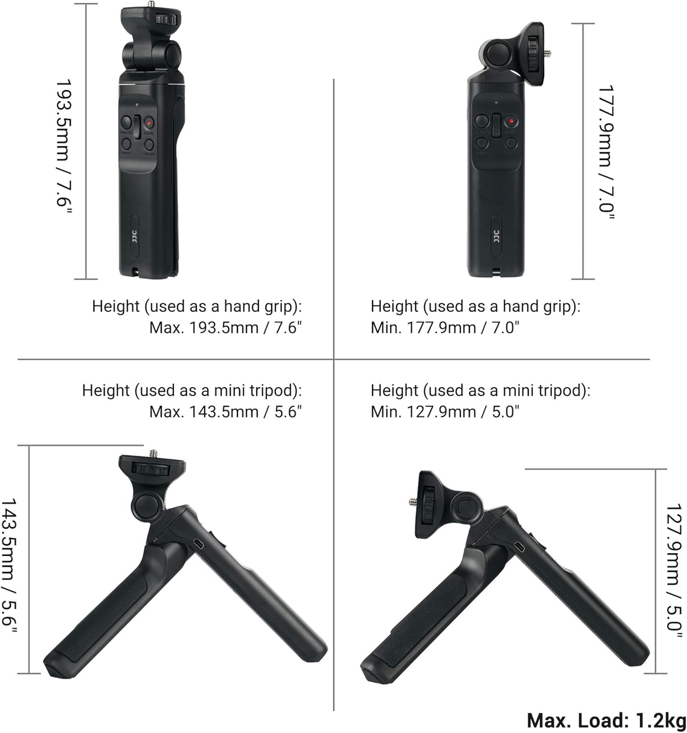 Helping to improve shooting stability, this wired remote shooting grip from JJC is a convenient tool that serves as a larger grip for handheld shooting or one handed operation, perfect for vlog shooting, live streaming and selfie. It features a pan handle with wired remote and let you control power on / off, video start / stop, focusing / shooting picture, zooming and displaying grid lines using the buttons found on the grip.