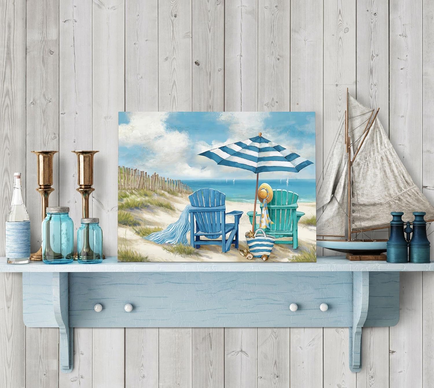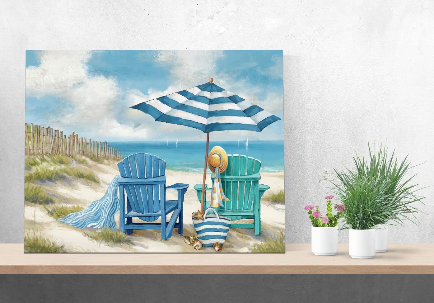 High-definition canvas print of a blue ocean beach scene