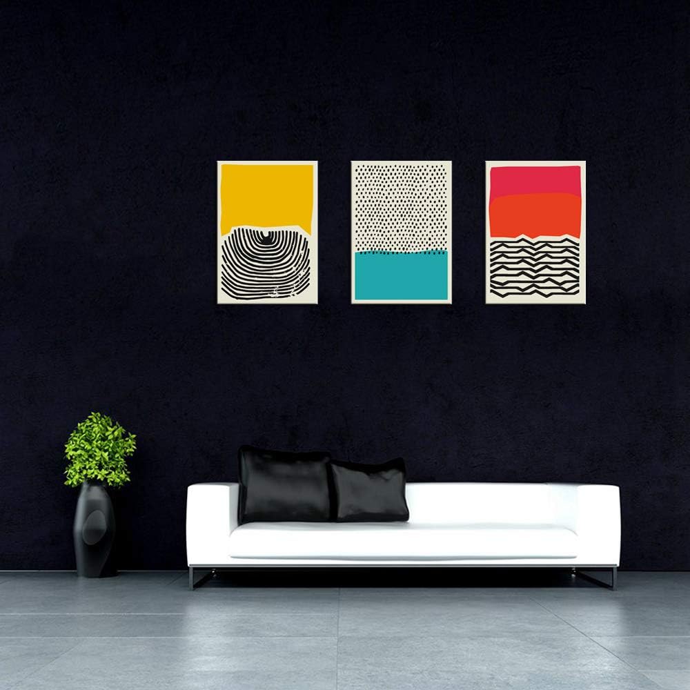 Modern Abstract Art Prints Yellow Red and Blue Canvas Poster Canvas Wall Art Paintings for Living Room Wall Artworks (Geometry, 12x16inchx3)