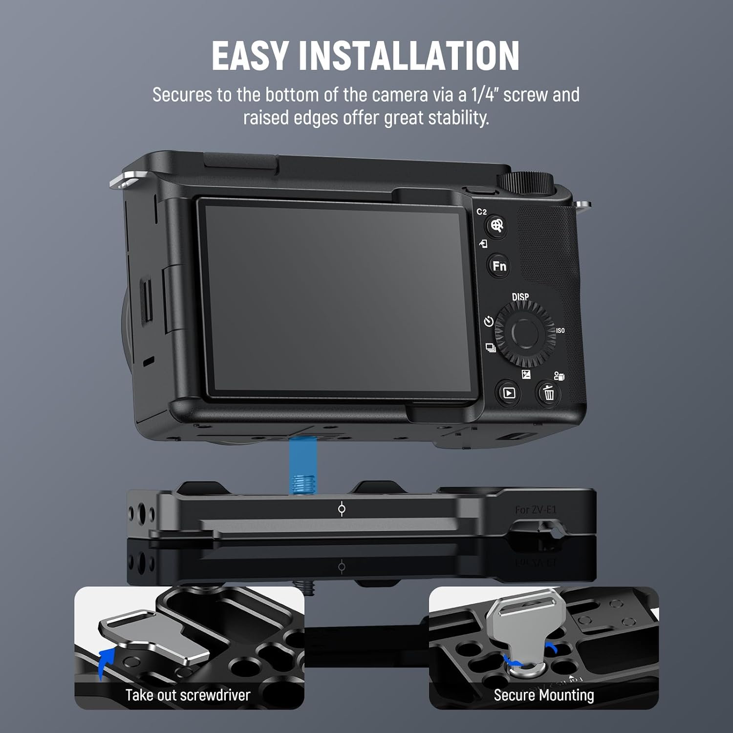 【Compatible with Sony ZV-E1 Camera】 Compatible with Sony ZV-E1 camera, this baseplate is designed to improve the handheld experience and elevate content creation quality by offering the camera accessory expandability. 2.6oz/73g in weight and 5.2″x2.1″x0.6″/131x54x15mm in size, it is a lightweight and slim tool perfect for vlogging, filmmaking, and photography on the go