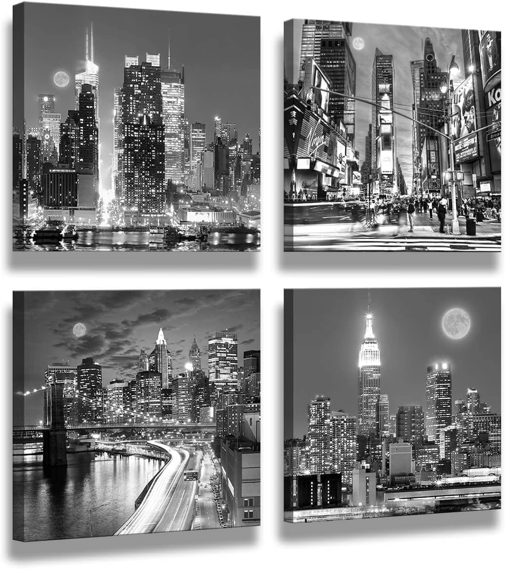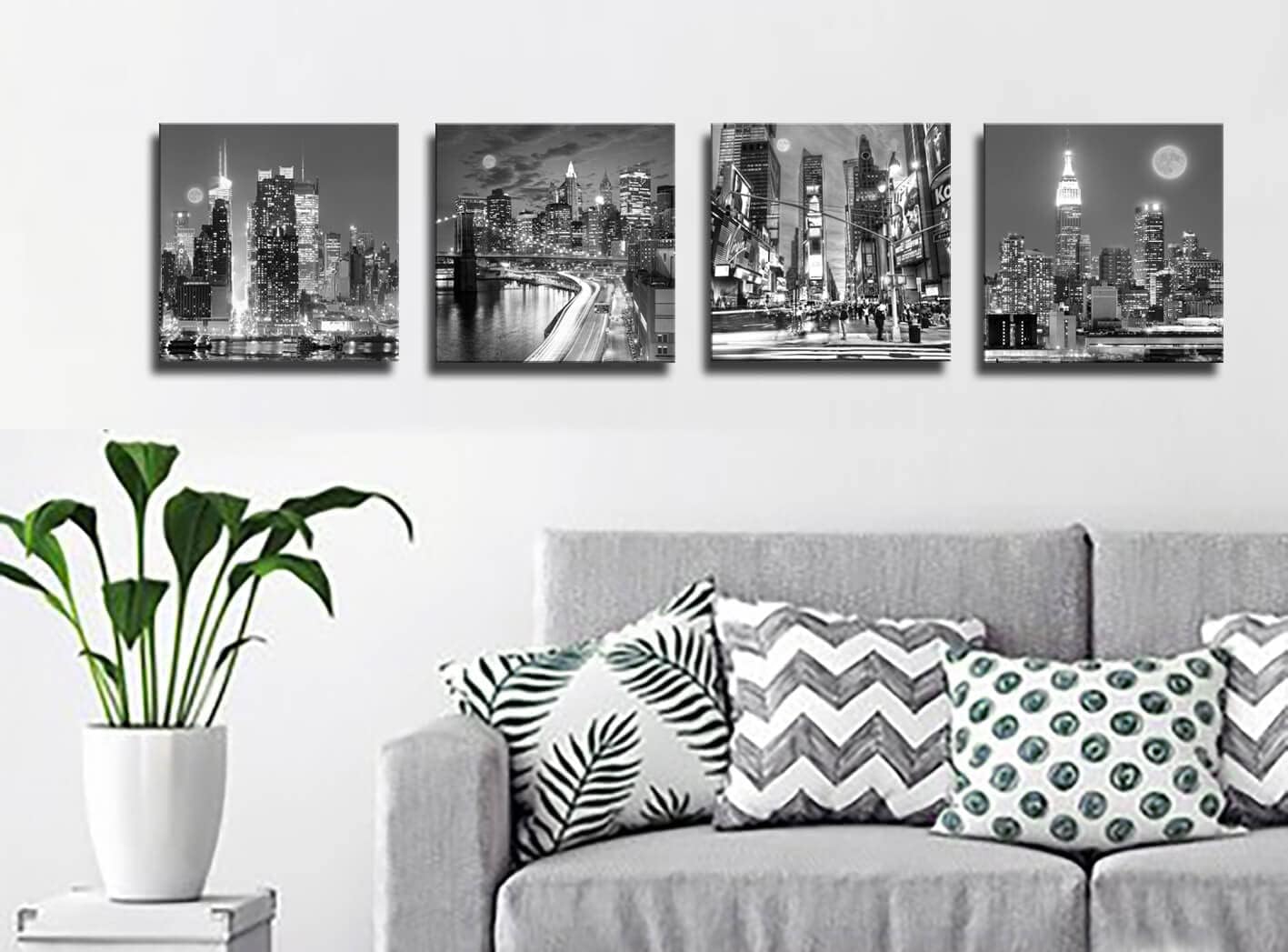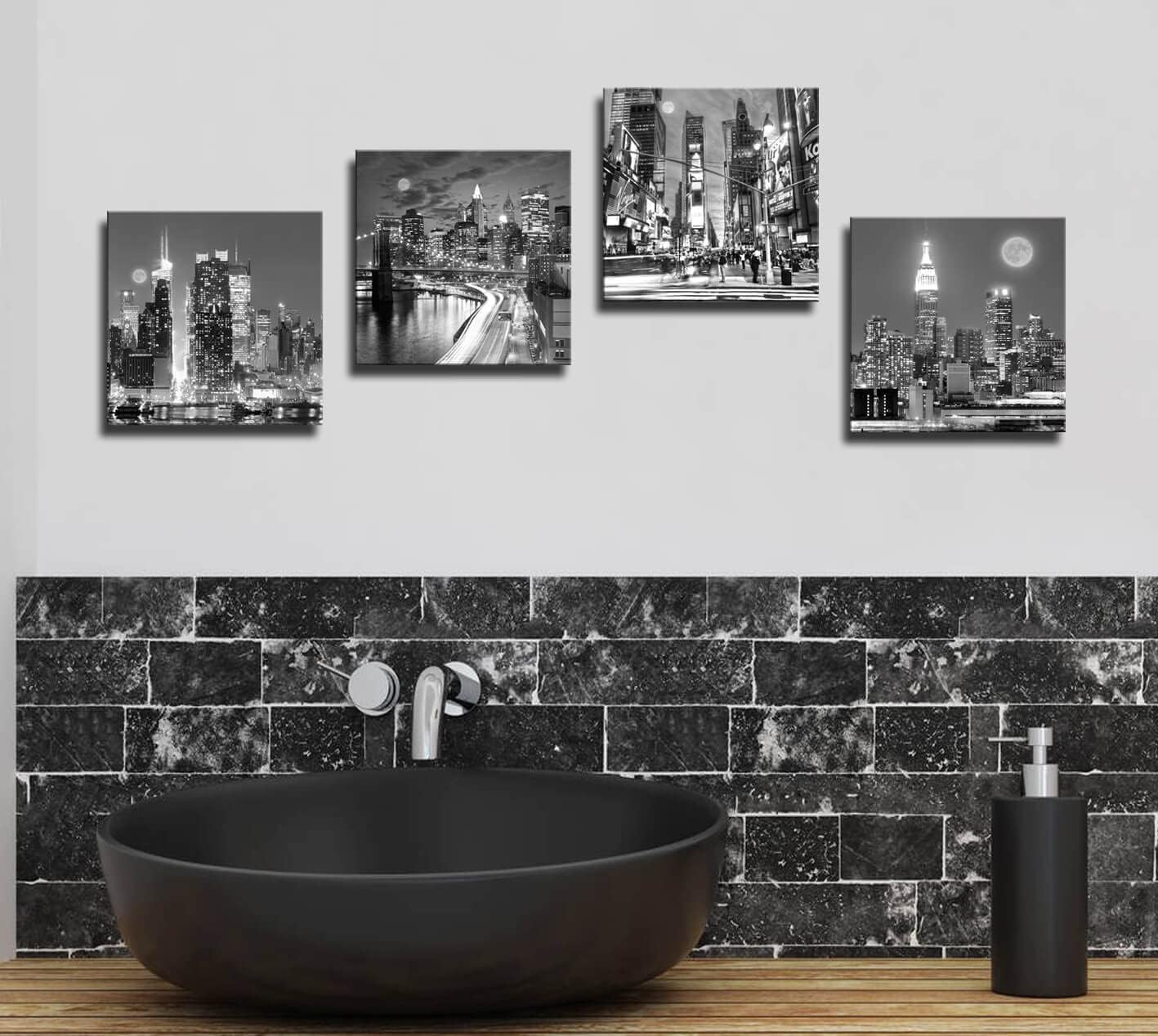 New York Wall Art Black And White Wall art Canvas Wall Art Print Black and White Brooklyn Bridge,Empire State Building New york Poster Wall Art Modern Artwork for Office Home Decor 14x 14inch x 4