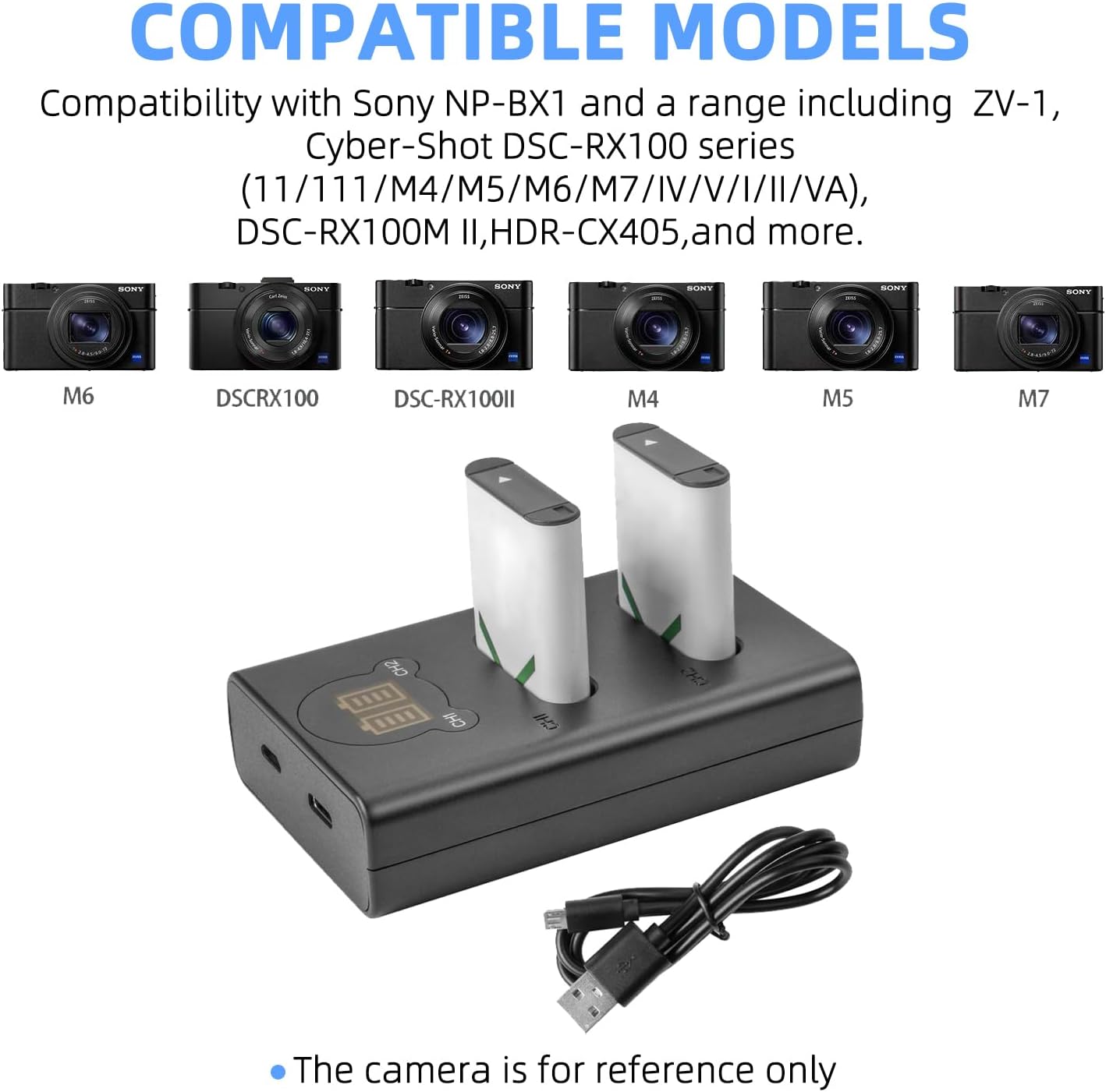 NP-BX1 Battery Charger with LCD Dual Charger Type C Port Compatible with Sony ZV-1,DSC-RX100M II,DSC-RX100 III,DSC-RX100 IV,DSC-RX100 V/VII,DSC-RX100,DSC-RX100 II Camera