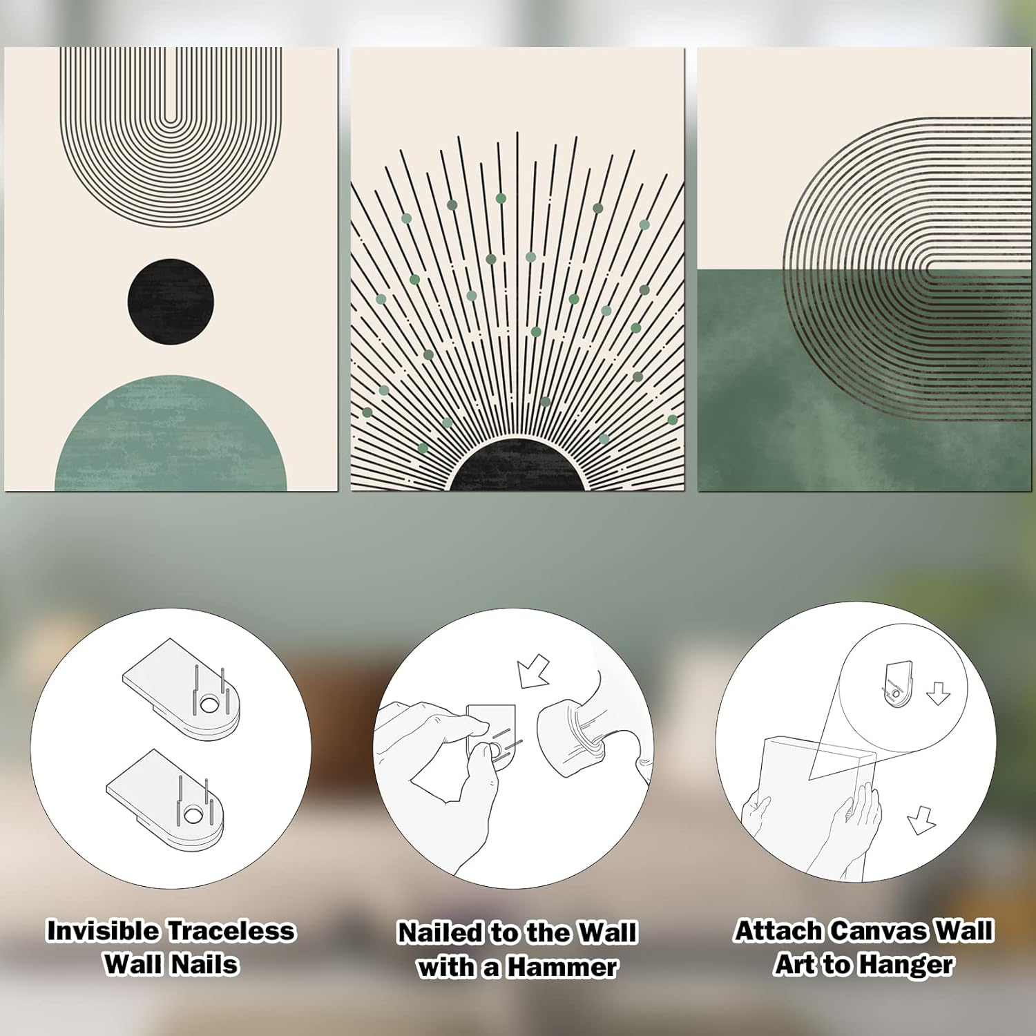 【Ready To Hang】The Minimalist boho wall art comes with a hanging kit, you just need to measure the wall size and hang the new abstract canvas wall art when it arrives. Each canvas art print is packaged in sealed cartons to prevent damage from shipping.