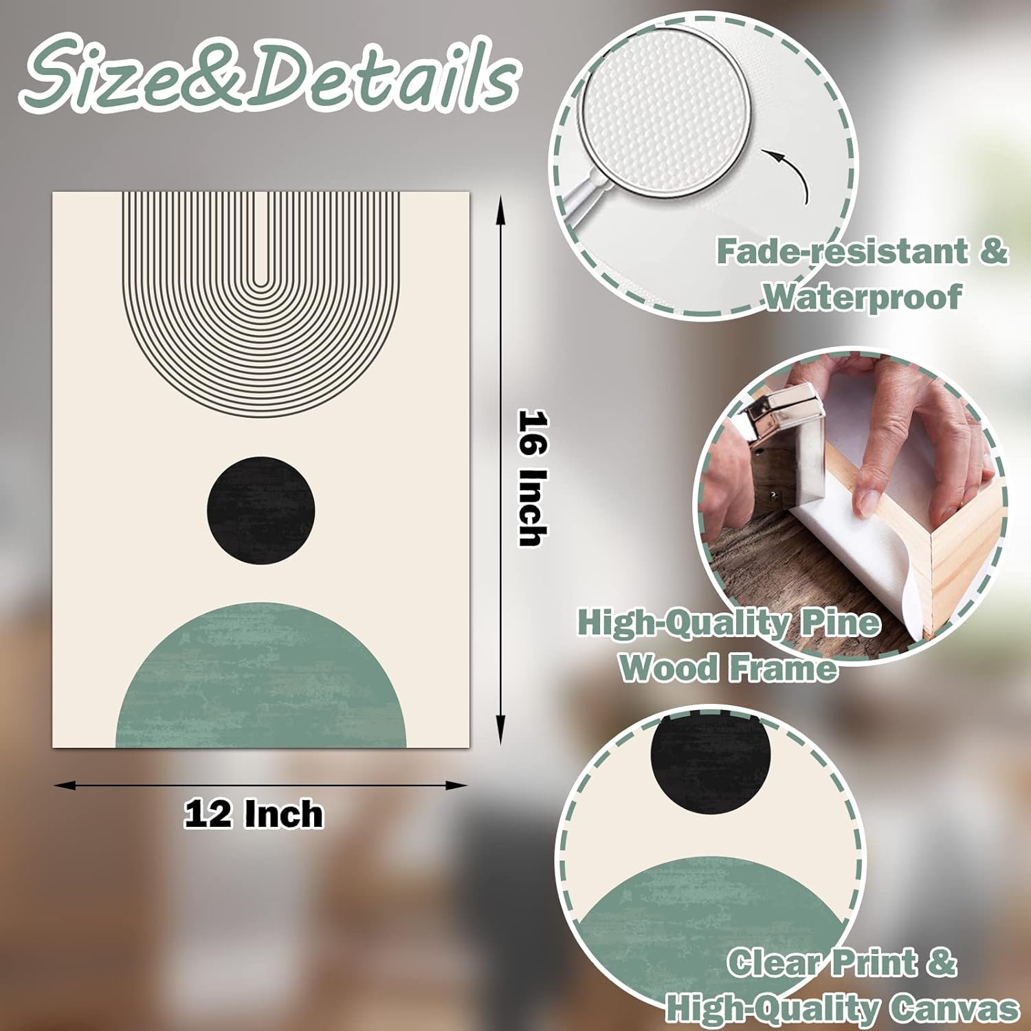 【High-Quality Canvas Wall Art】This minimalist boho wall art is printed on premium quality canvas and adopts the finest fade-resistant ink, which will not fade over time, and is waterproof and UV resistant, making this modern wall art dynamic. And each wall art is stretched tightly over a high-quality pine wood frame, ensuring the canvas is stretched and does not crease and bend. We insist on using the best materials and workmanship to ensure boho canvas wall art decor durability.
