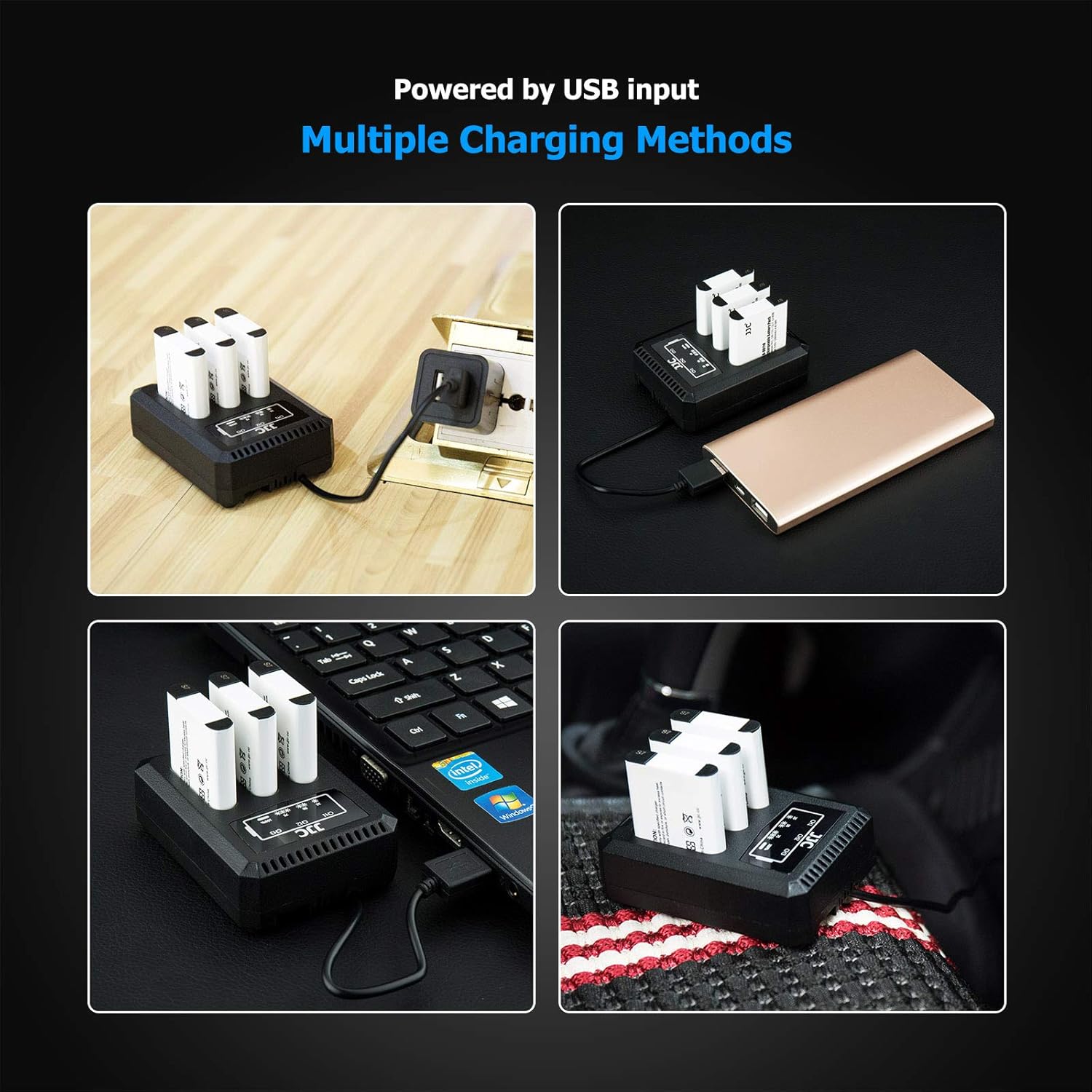 【SPEEDY CHARGER】:Powered by USB sources, you can charge your battery with AC adapter, laptop, power bank or car charger, which enables you to refresh your battery wherever and whenever.5V 2.2A input, and 3 batteries can be fully charged at the same time in 2.4 hours.