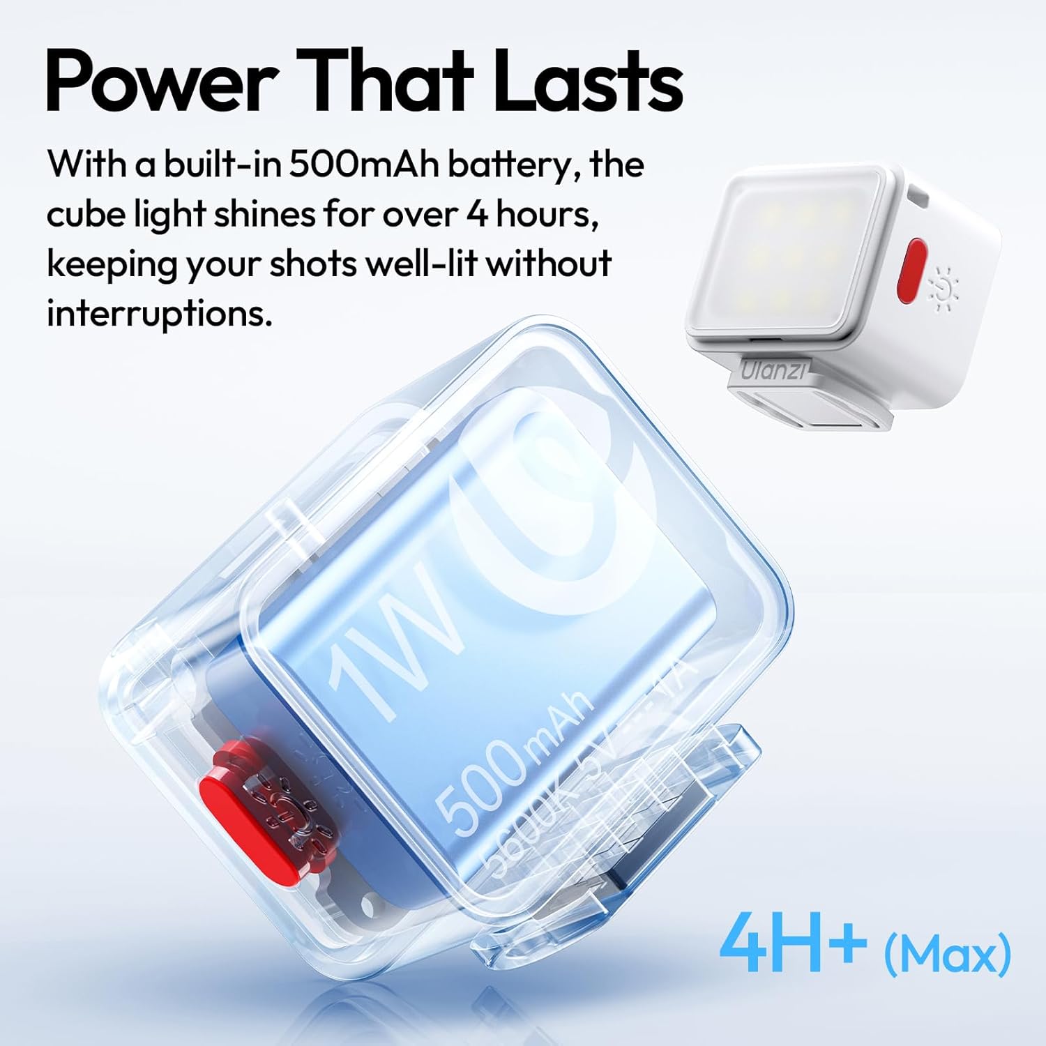 【Ultra-Compact & Portable】 The ULANZI DG01 Mini Cube Light is a super lightweight (only 22g) and mini light (30×32×28.5mm), designed for ultimate portability. With its small light size and lanyard hole, it’s perfect as a camera accessory for photography, vlogging, or as a selfie light on the go.