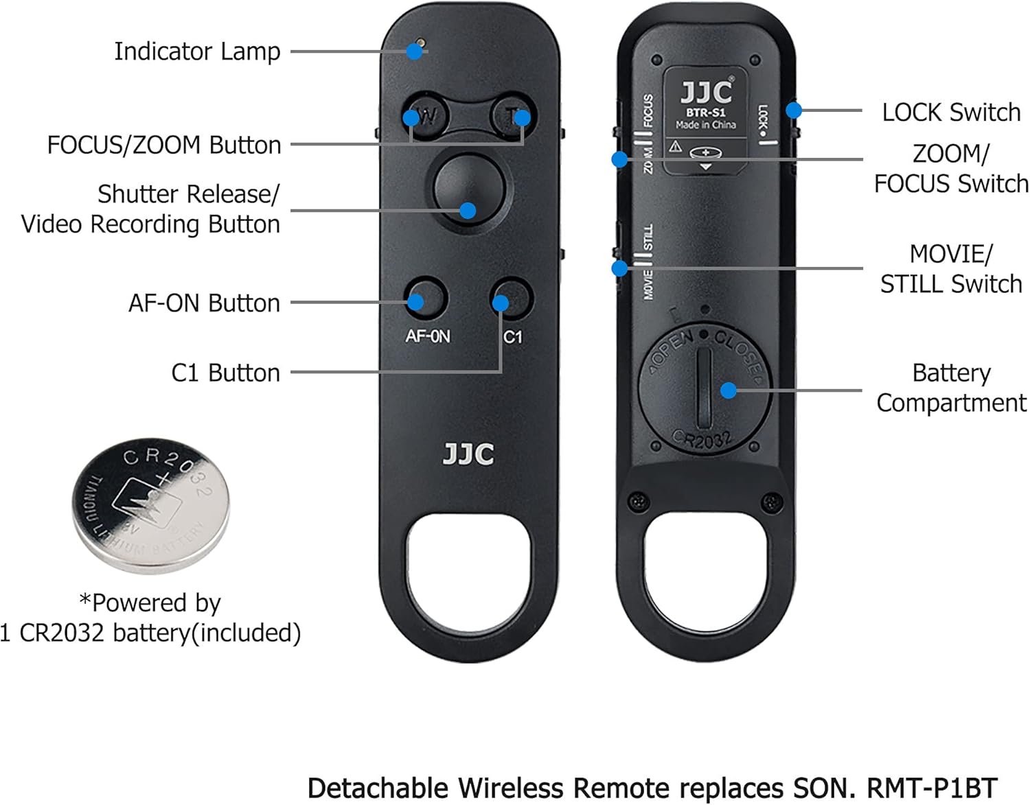 Compare with Sony GP-VPT2BT,this built in remote is removable, replaces Sony RMT-P1BT remote commander, which allows you to wirelessly release your camera’s shutter and start/stop video via Bluetooth within a 32 ft/10m operating range at any direction