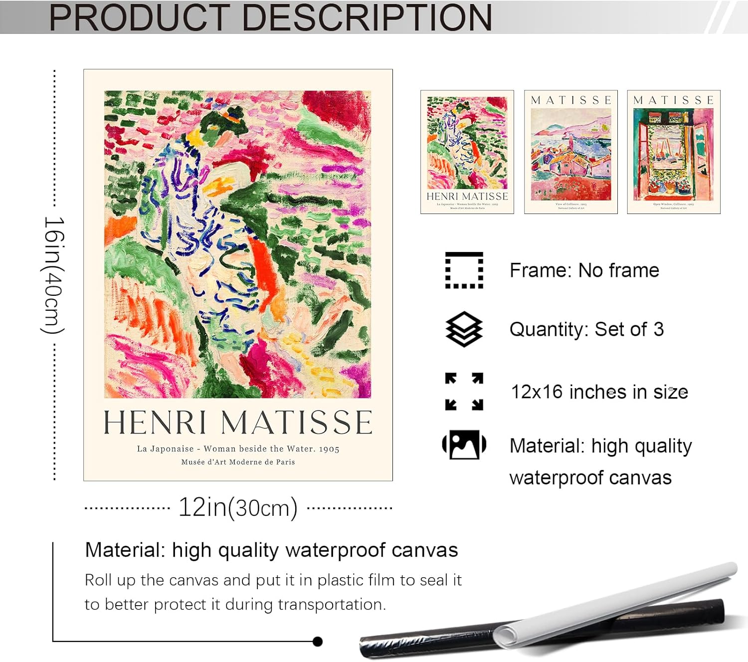 Famous Art Prints: Art prints size is 12×16 in set of 3,the impressionist print do not include frames.You to choose your preferred frames to showcase them.This flower poster is perfect for livingroom or bedroom.