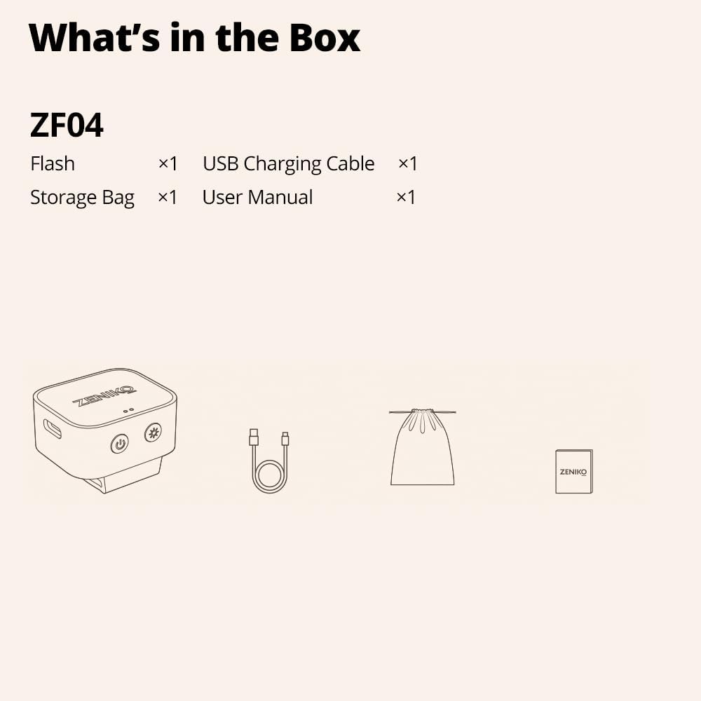Convenient Type-C Charging: The ZF04 mini flash supports fast and easy Type-C charging via its built-in lithium battery. No need for extra batteries—simply recharge using a power bank or adapter, achieving a full charge in just 40 minutes.