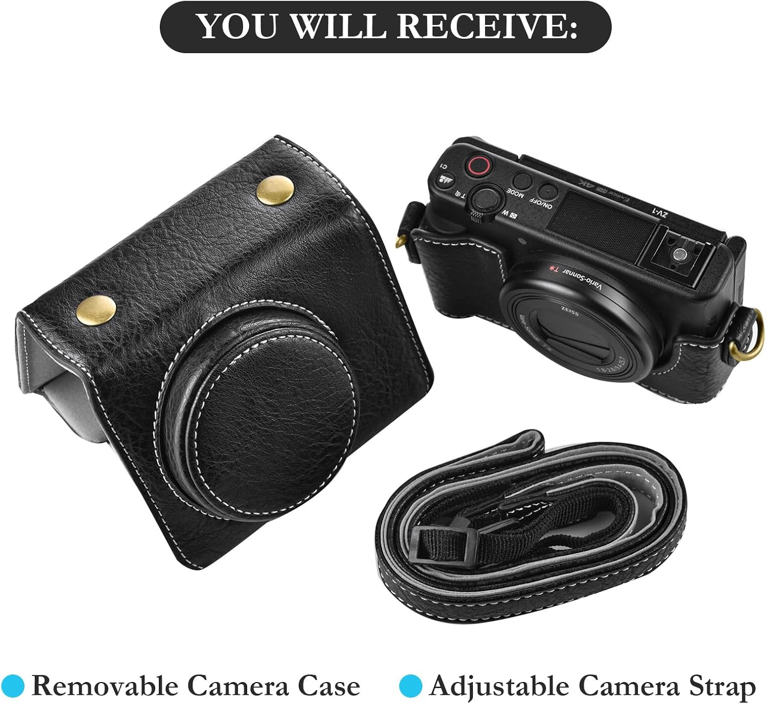 【High Quality Material】Made of premium artificial leather on the outside and soft cloth on the inside, this camera case delivers a comfortable feel and premium protective features to your camera. Enjoy better grip and a touch of elegance to your Sony ZV-1F or ZV-1 II Camera.